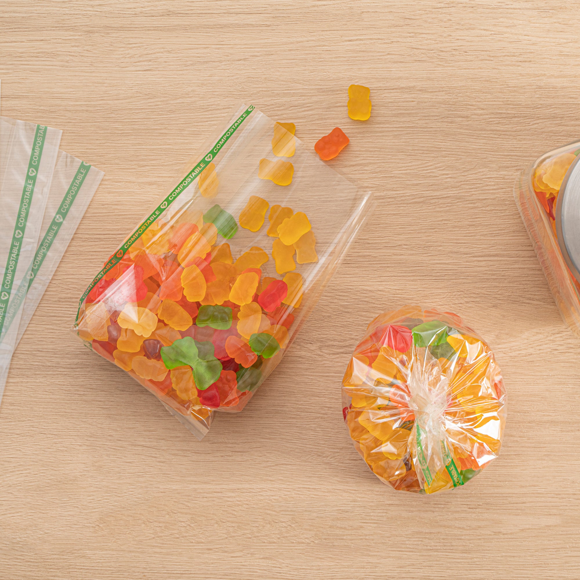 BASIC NATURE CLEAR PLASTIC GUSSET BAG - COMPOSTABLE, HEAT SEALABLE