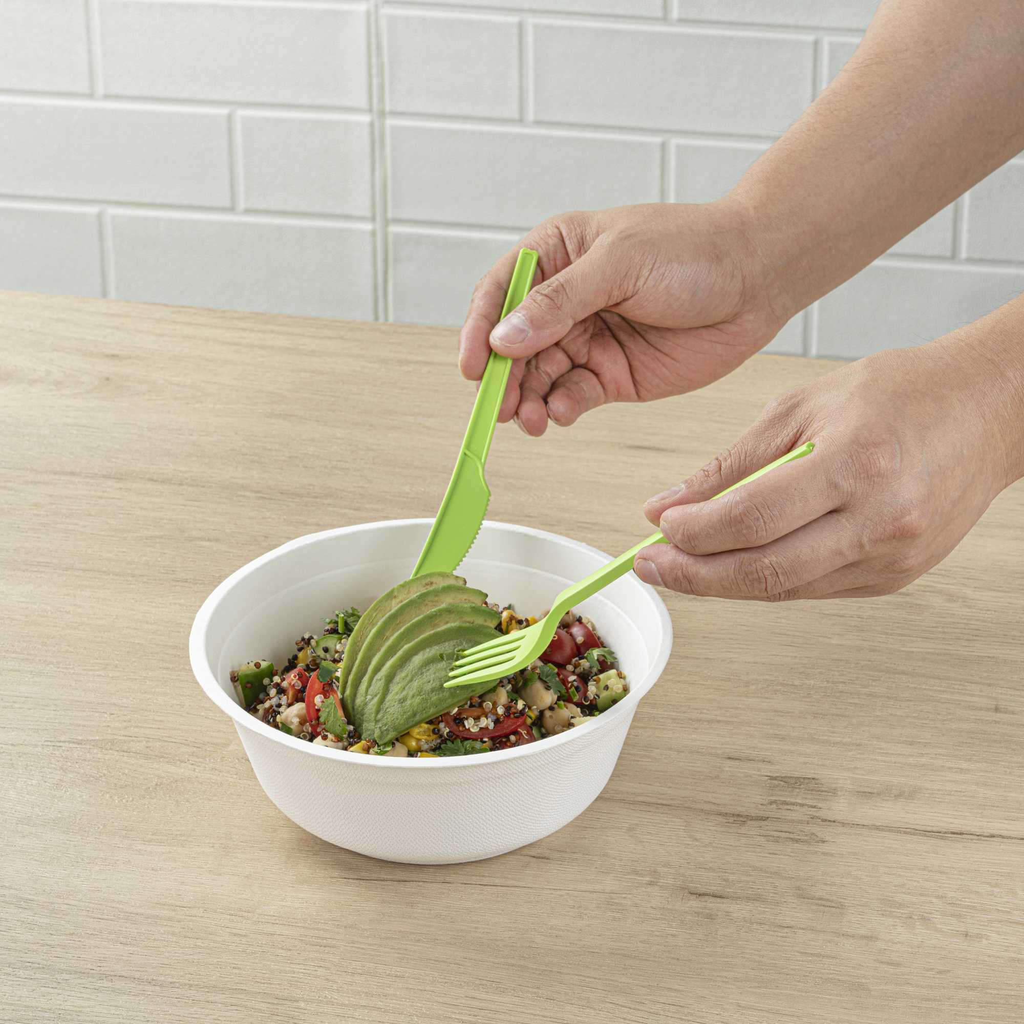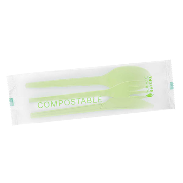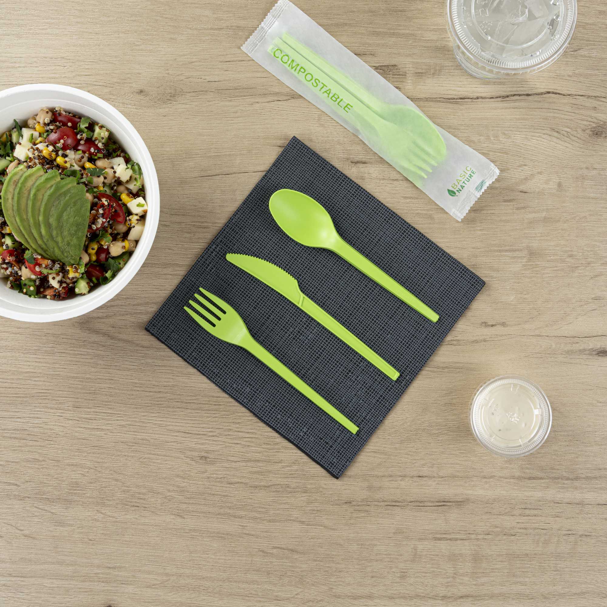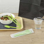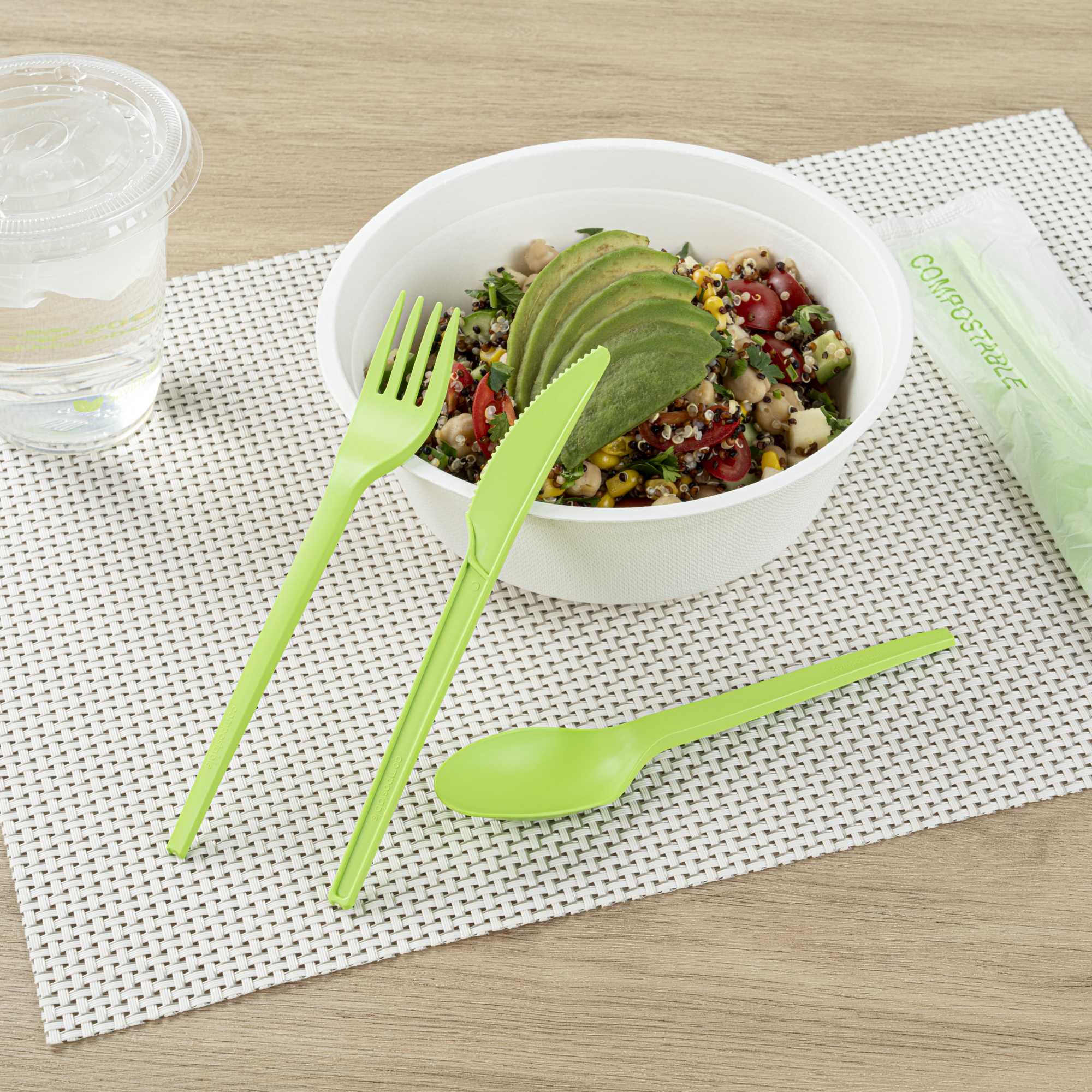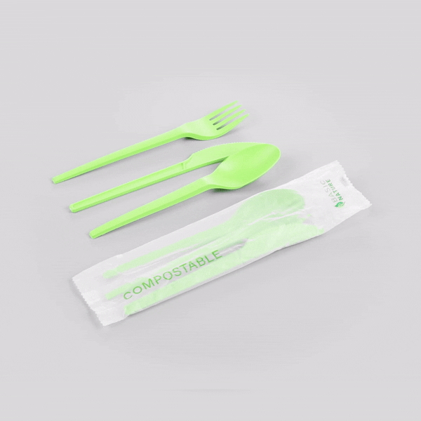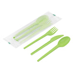 GREEN CPLA PLASTIC CUTLERY SET - COMPOSTABLE WRAPPER, HEAT-RESISTANT