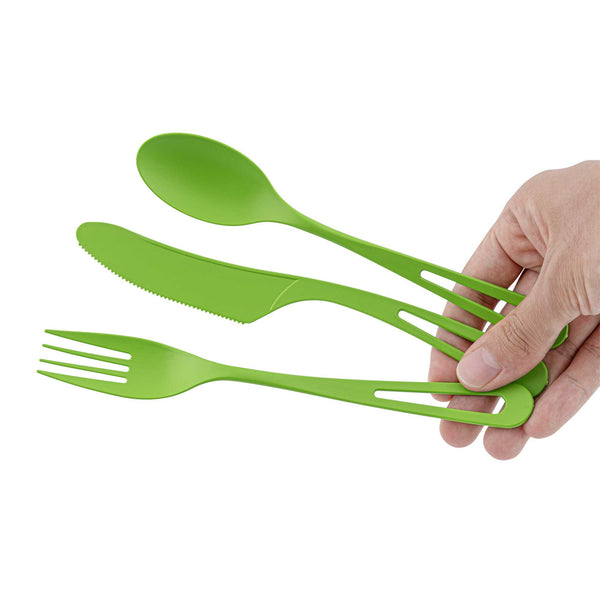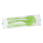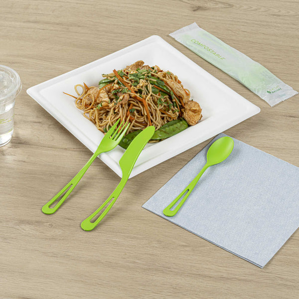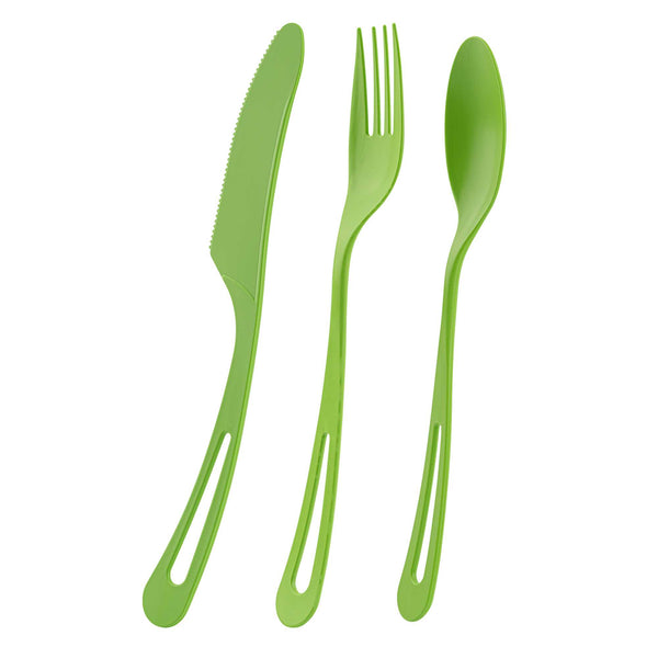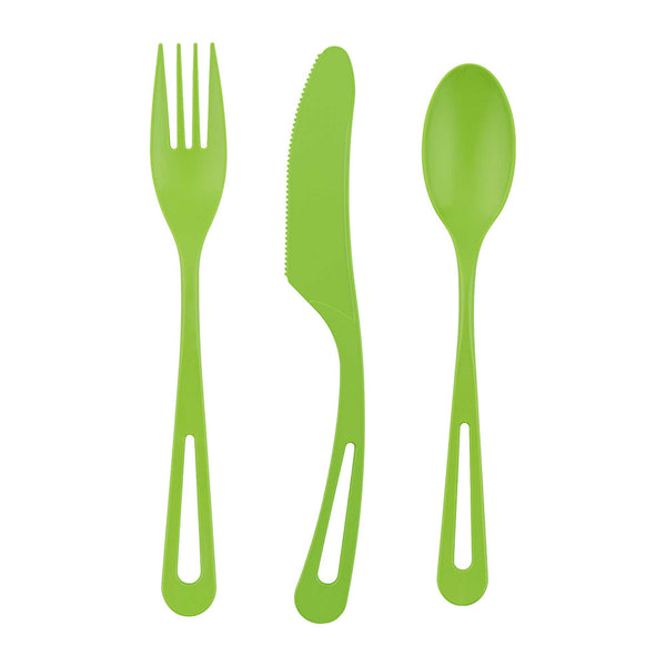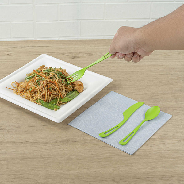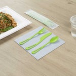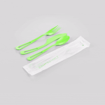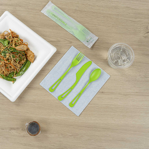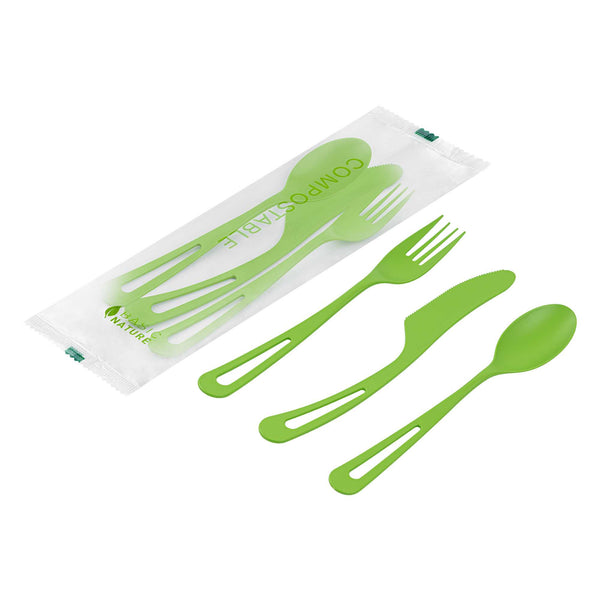 GREEN CPLA PLASTIC CUTLERY SET - COMPOSTABLE WRAPPER, HEAT-RESISTANT