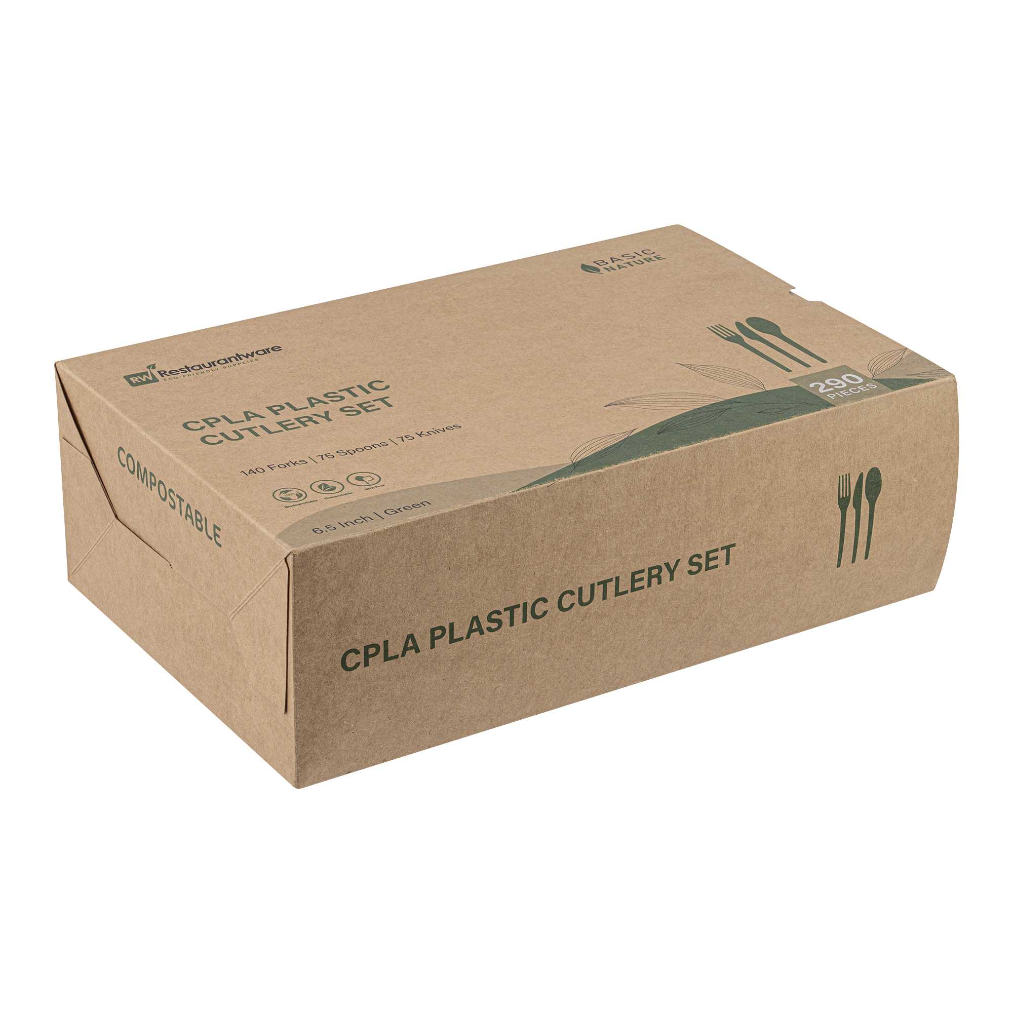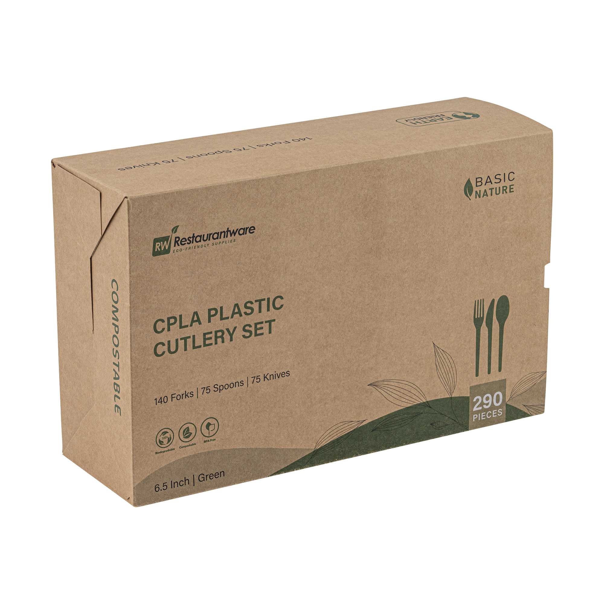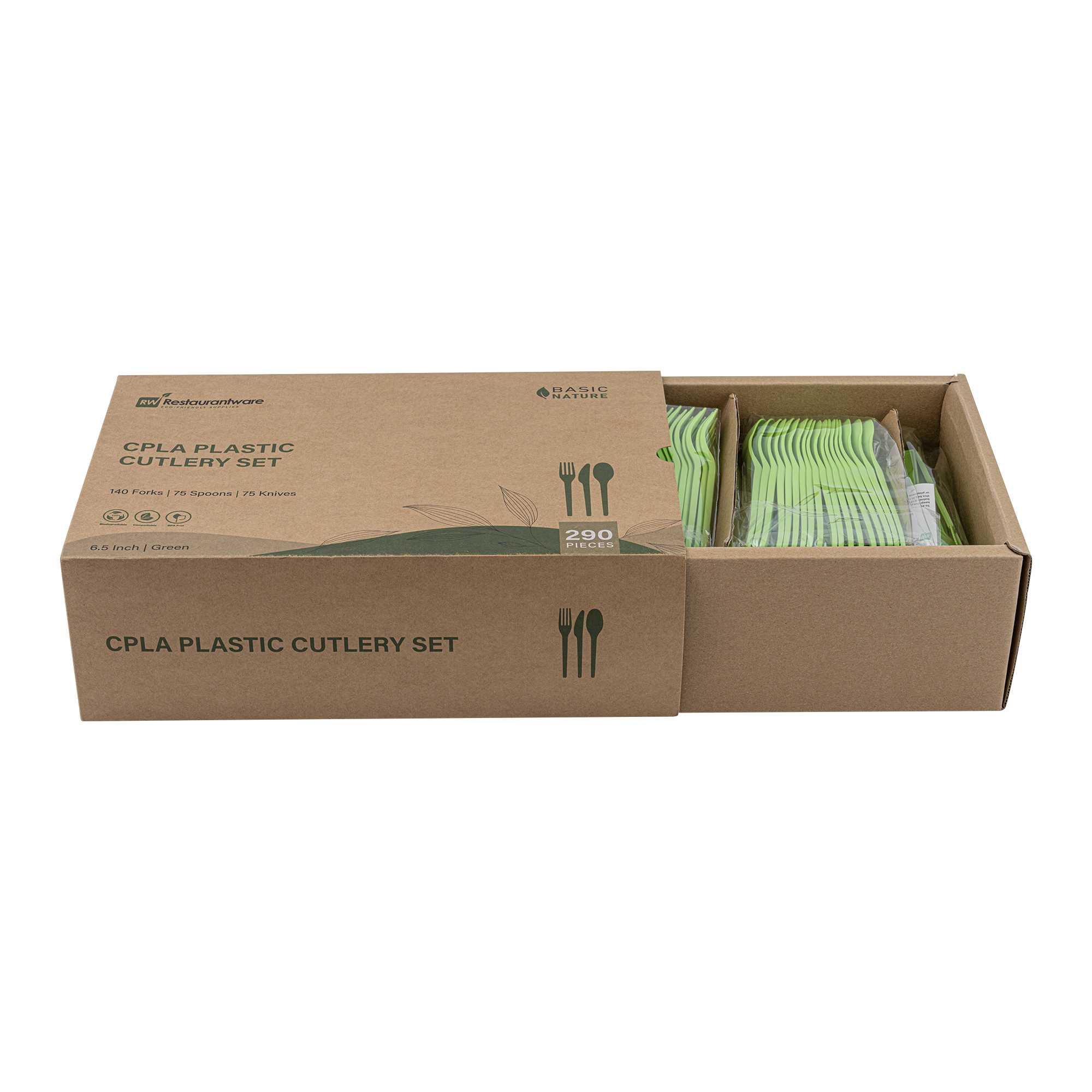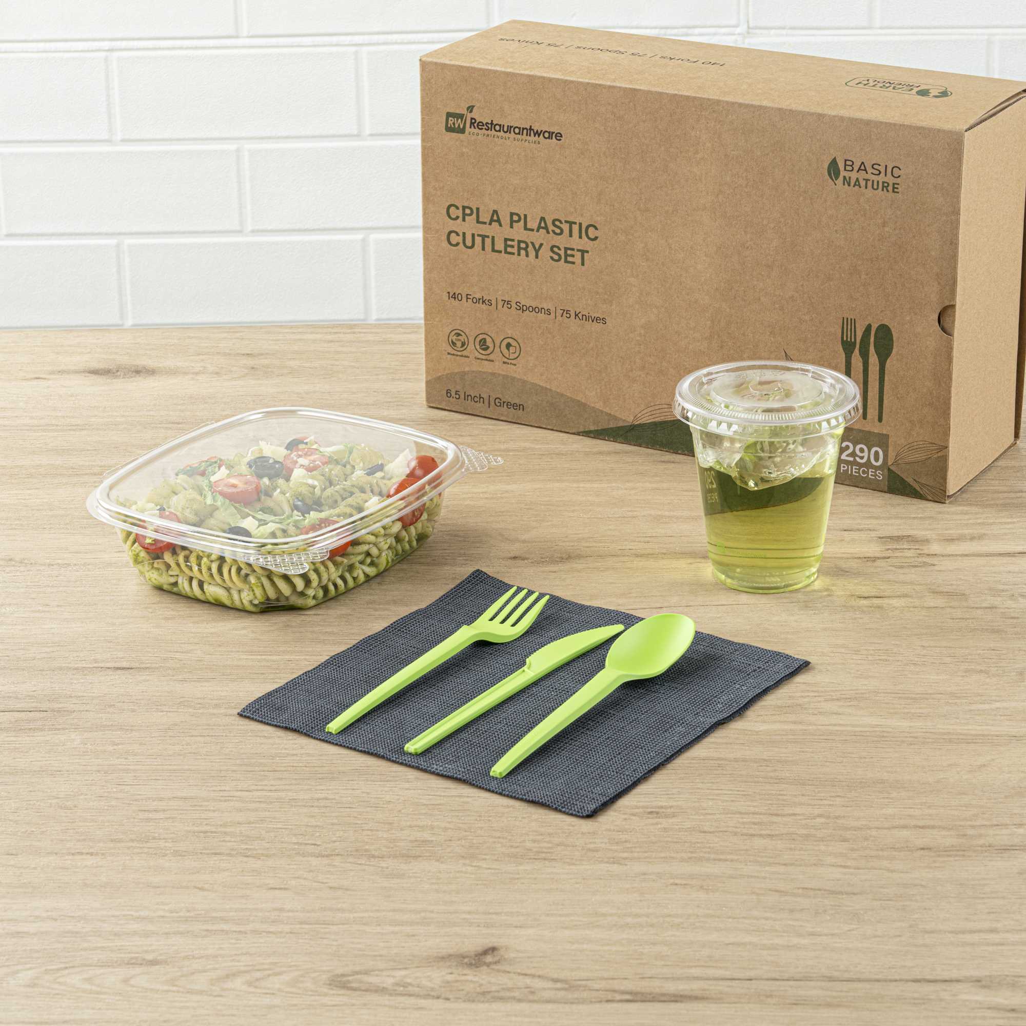 GREEN CPLA PLASTIC CUTLERY SET - HEAT-RESISTANT, COMPOSTABLE