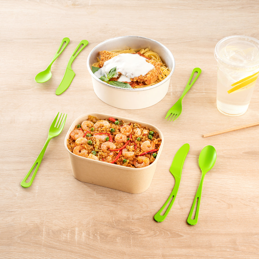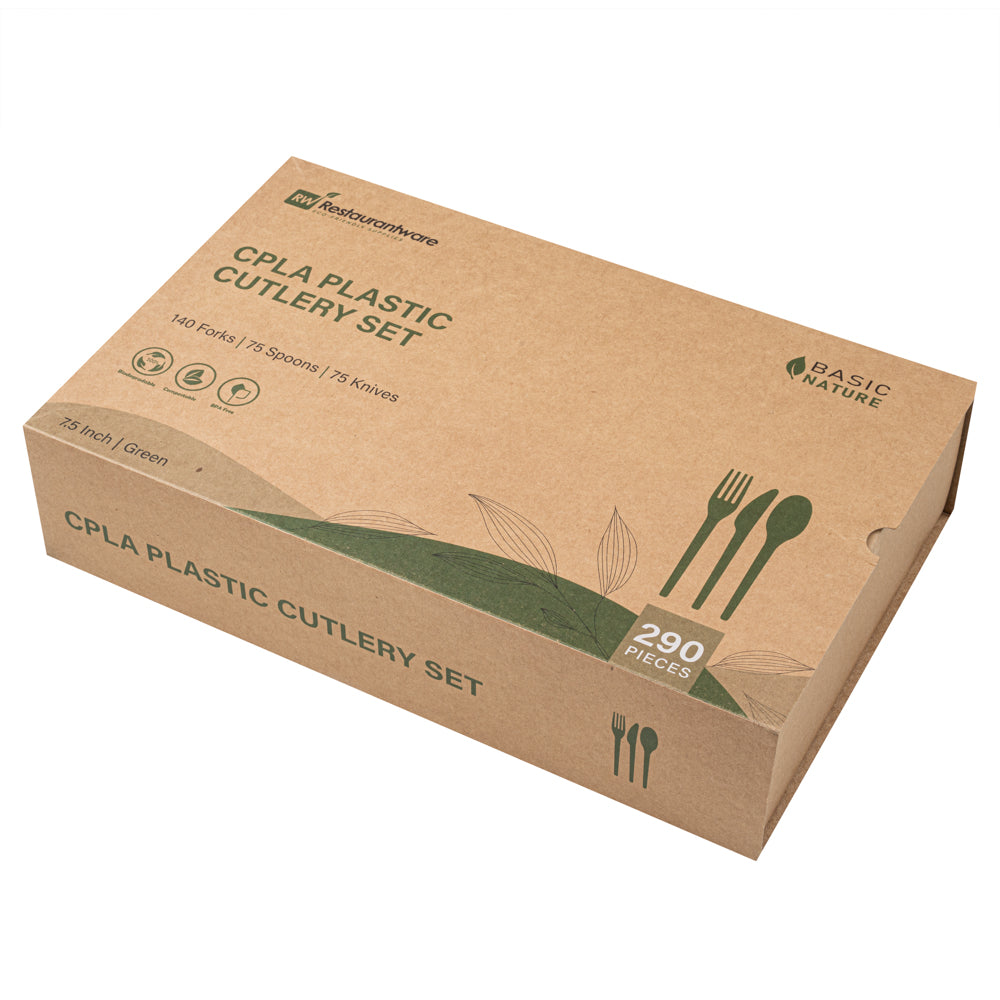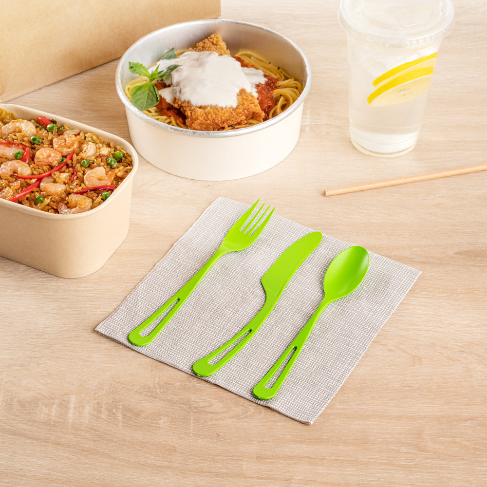 GREEN CPLA PLASTIC CUTLERY SET - HEAT-RESISTANT, COMPOSTABLE
