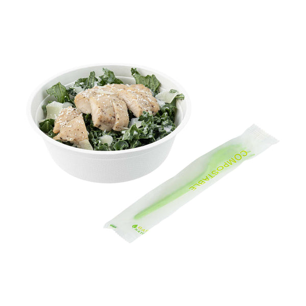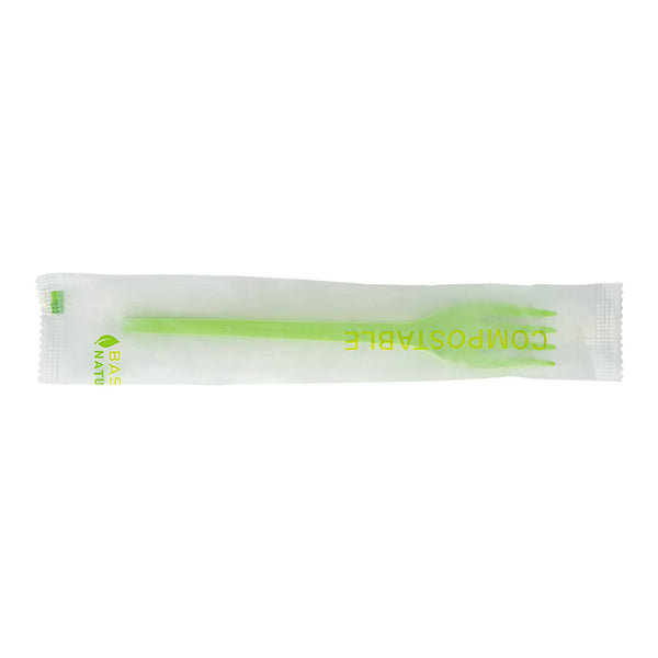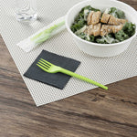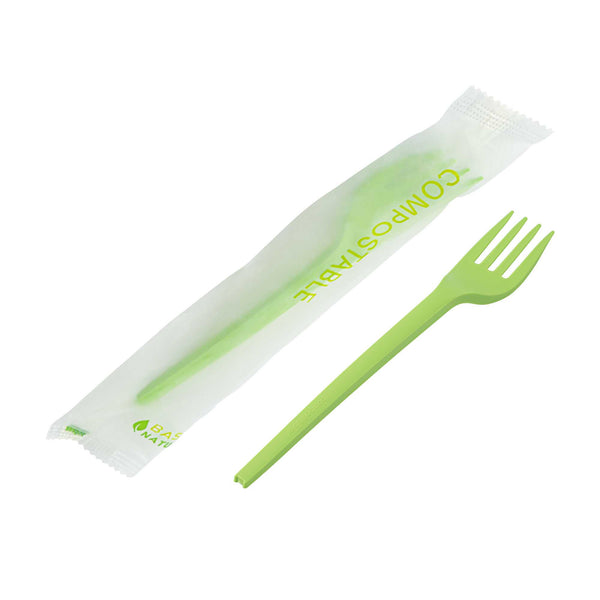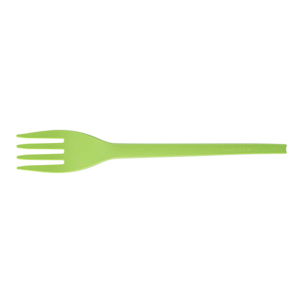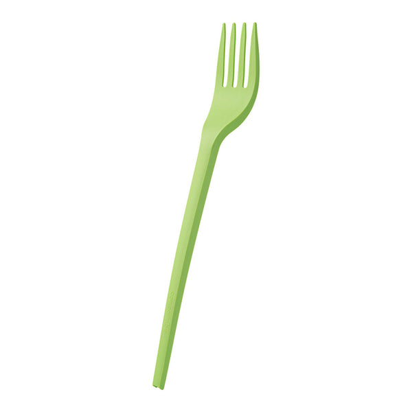 GREEN CPLA PLASTIC FORK - COMPOSTABLE WRAPPER, HEAT-RESISTANT
