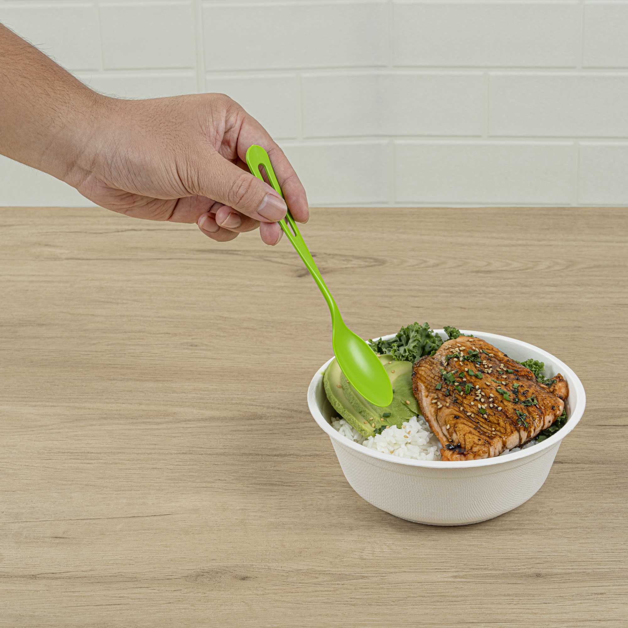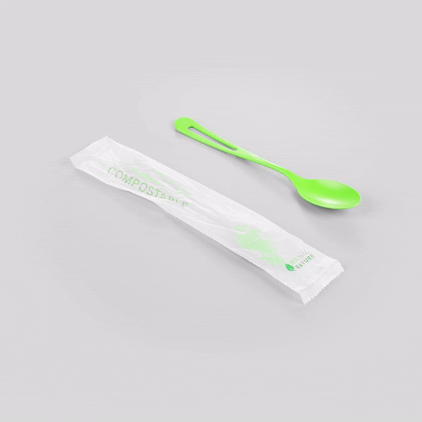 GREEN CPLA PLASTIC SPOON - COMPOSTABLE WRAPPER, HEAT-RESISTANT