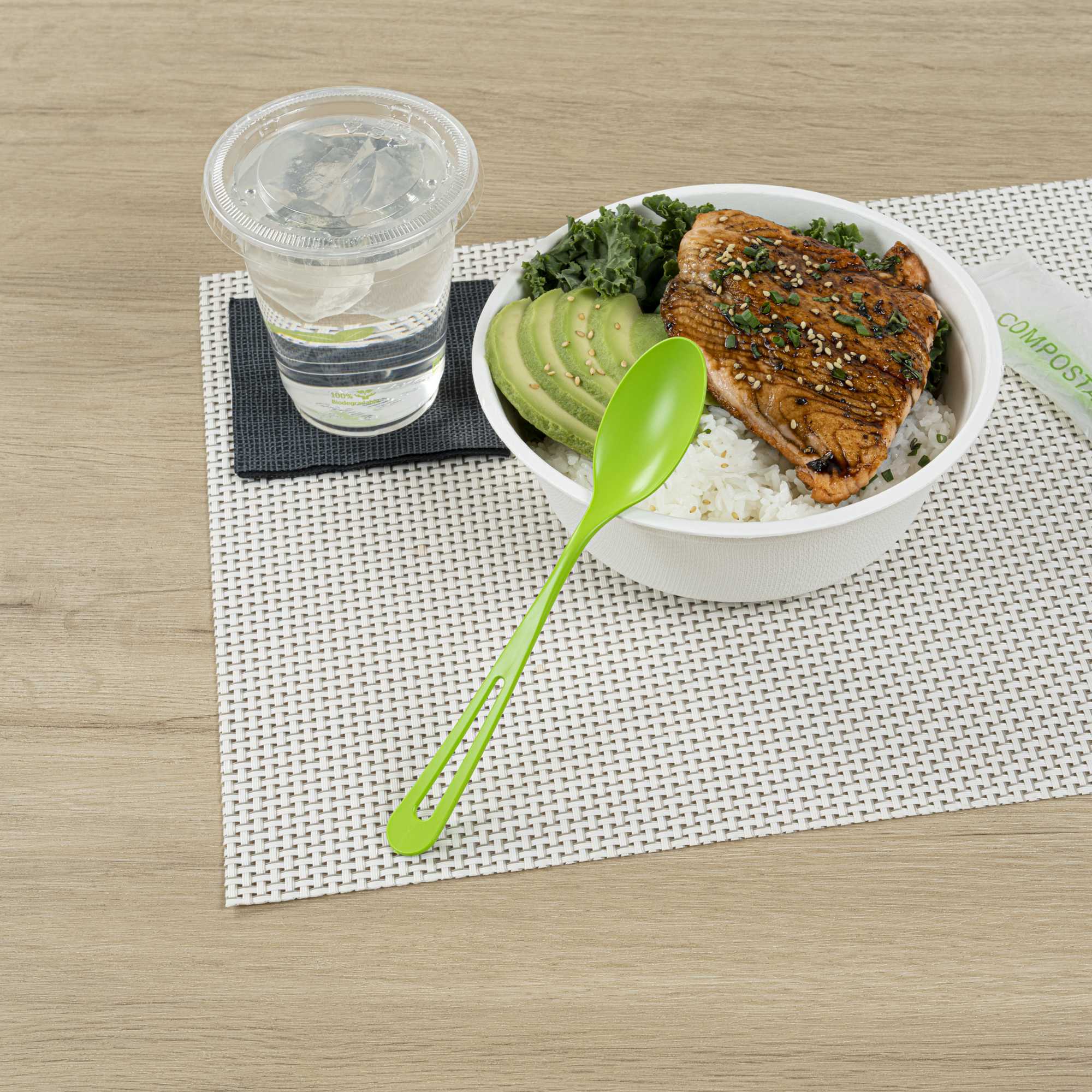 GREEN CPLA PLASTIC SPOON - COMPOSTABLE WRAPPER, HEAT-RESISTANT