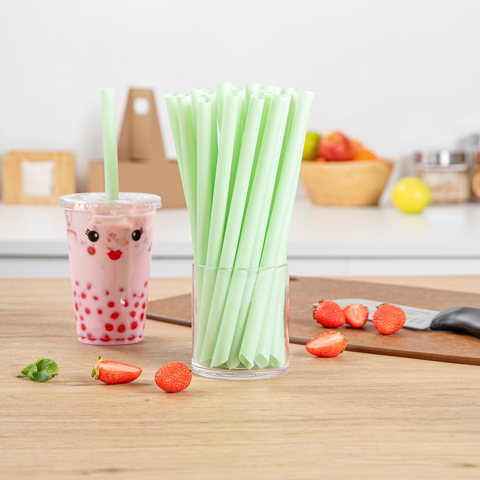 GREEN PLA EXTRA WIDE BOBA STRAW - UNWRAPPED, COMPOSTABLE, POINTED