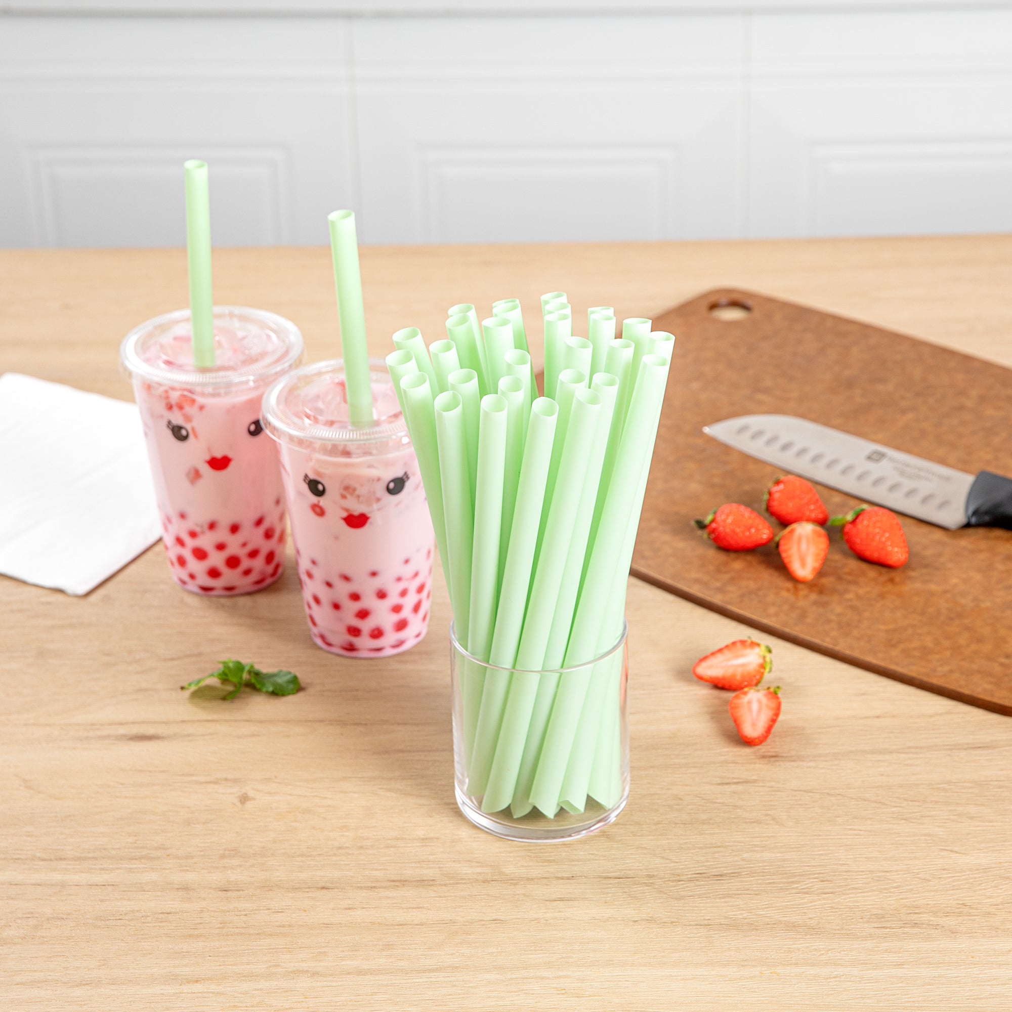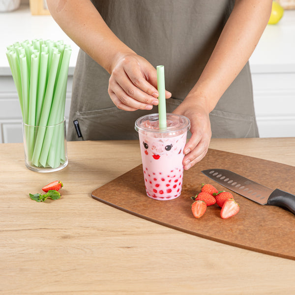 Enhance your beverage service with versatile, eco-friendly straws. Basic Nature Jumbo Green Boba Tea Straws are designed with a jumbo size and 8.5 inches in length, making them perfect for cans, glasses, and mason jars, ensuring a seamless fit for any drinking vessel. Made from 100 percent food-grade plastic, these green boba tea straws are non-toxic and lead-free, providing a safe drinking experience for all beverages. Their multiple uses make them ideal for serving smoothies, milkshakes, and iced coffees, adding value to your drink presentation. As a green smoothie straw, they are suitable for a variety of occasions, from bars to birthday parties, enhancing both casual and formal settings. The durability and sturdiness of these straws ensure they are reliable for different applications, while their commercial compostability supports sustainable practices. Elevate your drink service with these green milkshake straws that combine functionality with eco-consciousness. Each order includes 100 Basic Nature Jumbo Green Boba Tea Straws.