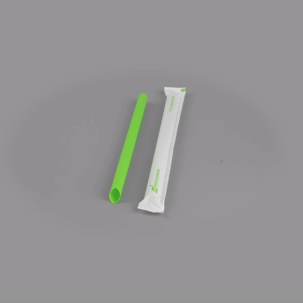 GREEN PLA PLASTIC / PBAT PLASTIC BOBA STRAW - WRAPPED, COMPOSTABLE