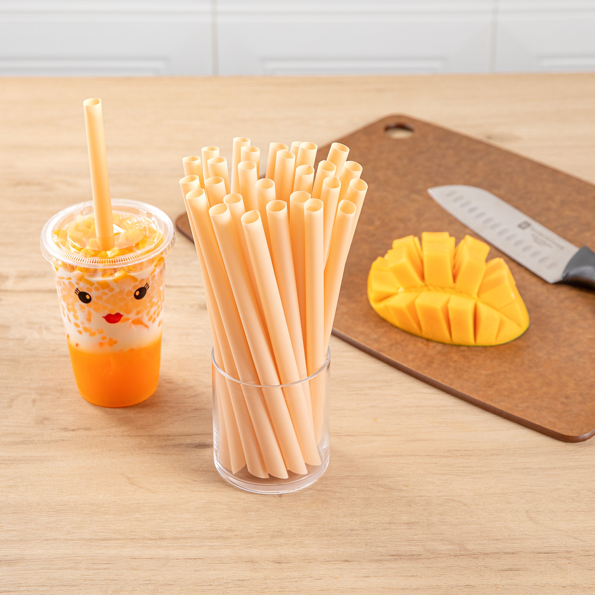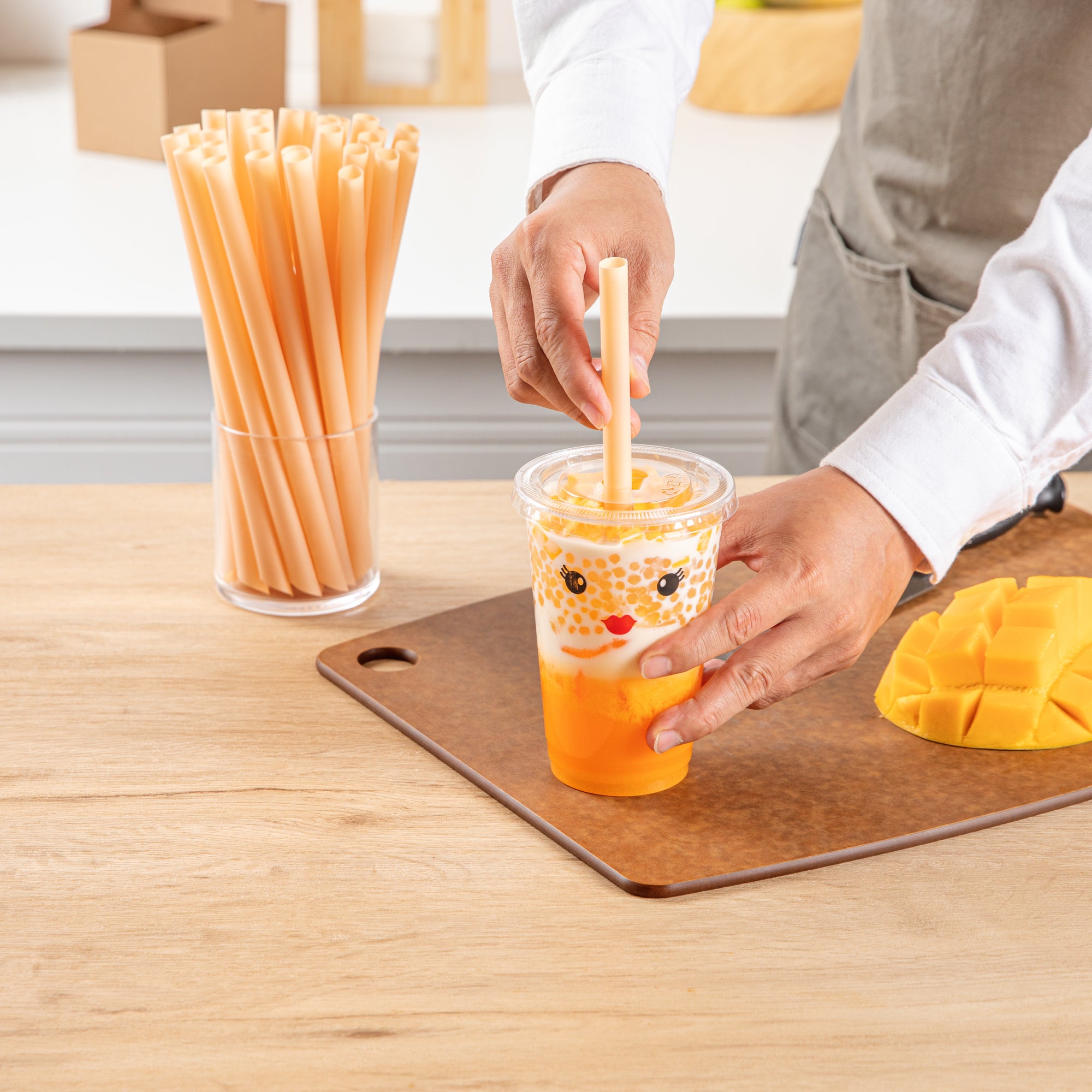ORANGE PLA EXTRA WIDE BOBA STRAW - UNWRAPPED, COMPOSTABLE, POINTED