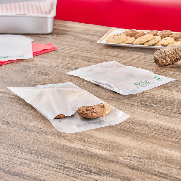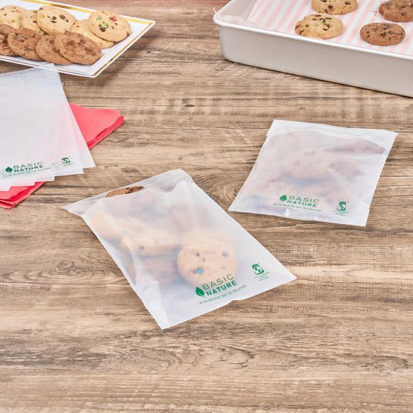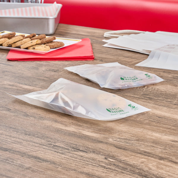 Enhance your sustainability efforts with storage solutions. Basic Nature BPI-Certified Compostable Food Storage Bags offer compostable support for operations, ensuring your foodservice establishment reduces its carbon footprint. Made from BPA-free plastic, these ziplock bags provide safe food storage and handling, making them a reliable choice for health-conscious kitchens. Their freezer-safe design efficiently preserves the quality of frozen foods, maintaining freshness and flavor. Measuring 7 inches in length and 5 inches in width, these translucent bags offer ample space for storing a variety of items. Ideal for operators looking to balance sustainability with practicality, these compostable food storage bags break down within 12 to 24 weeks when composted. Each order includes 100 Basic Nature Compostable Food Storage Bags.