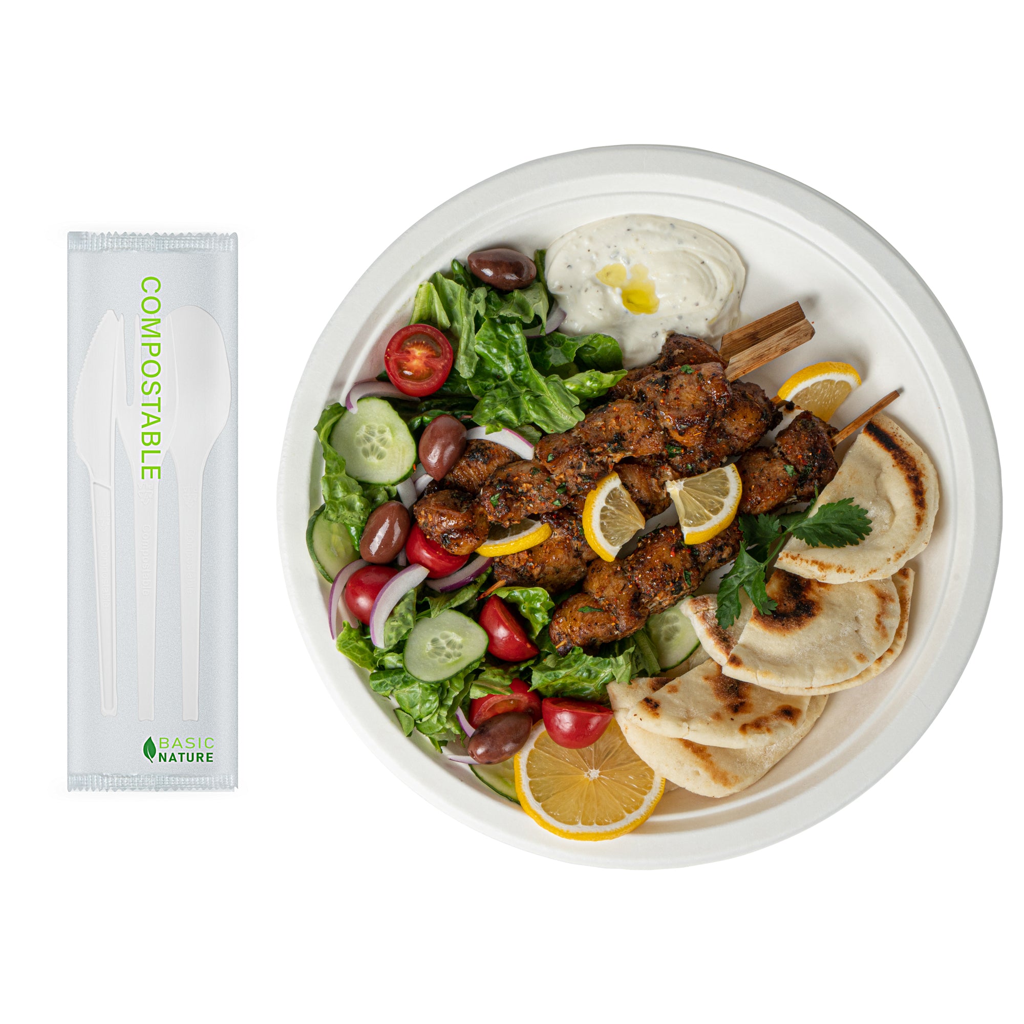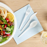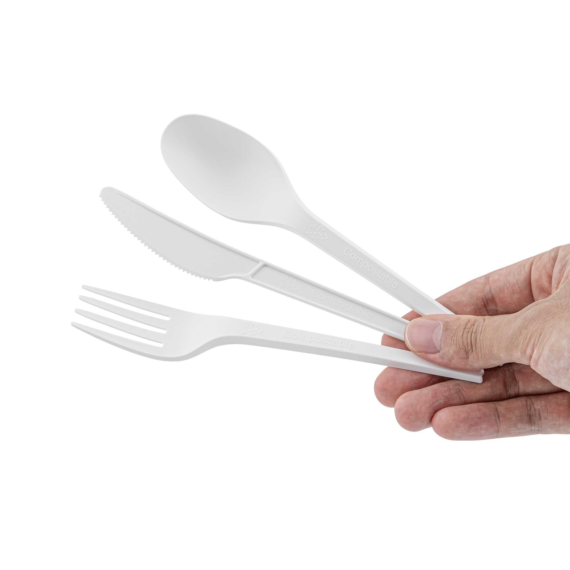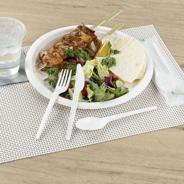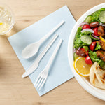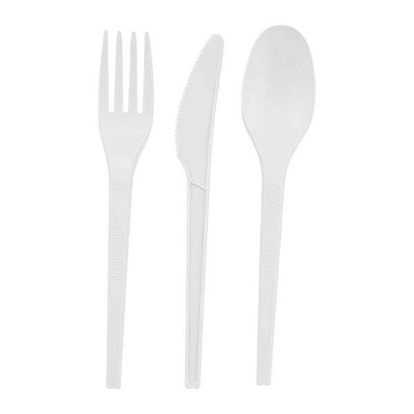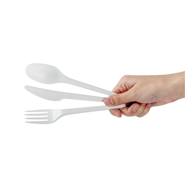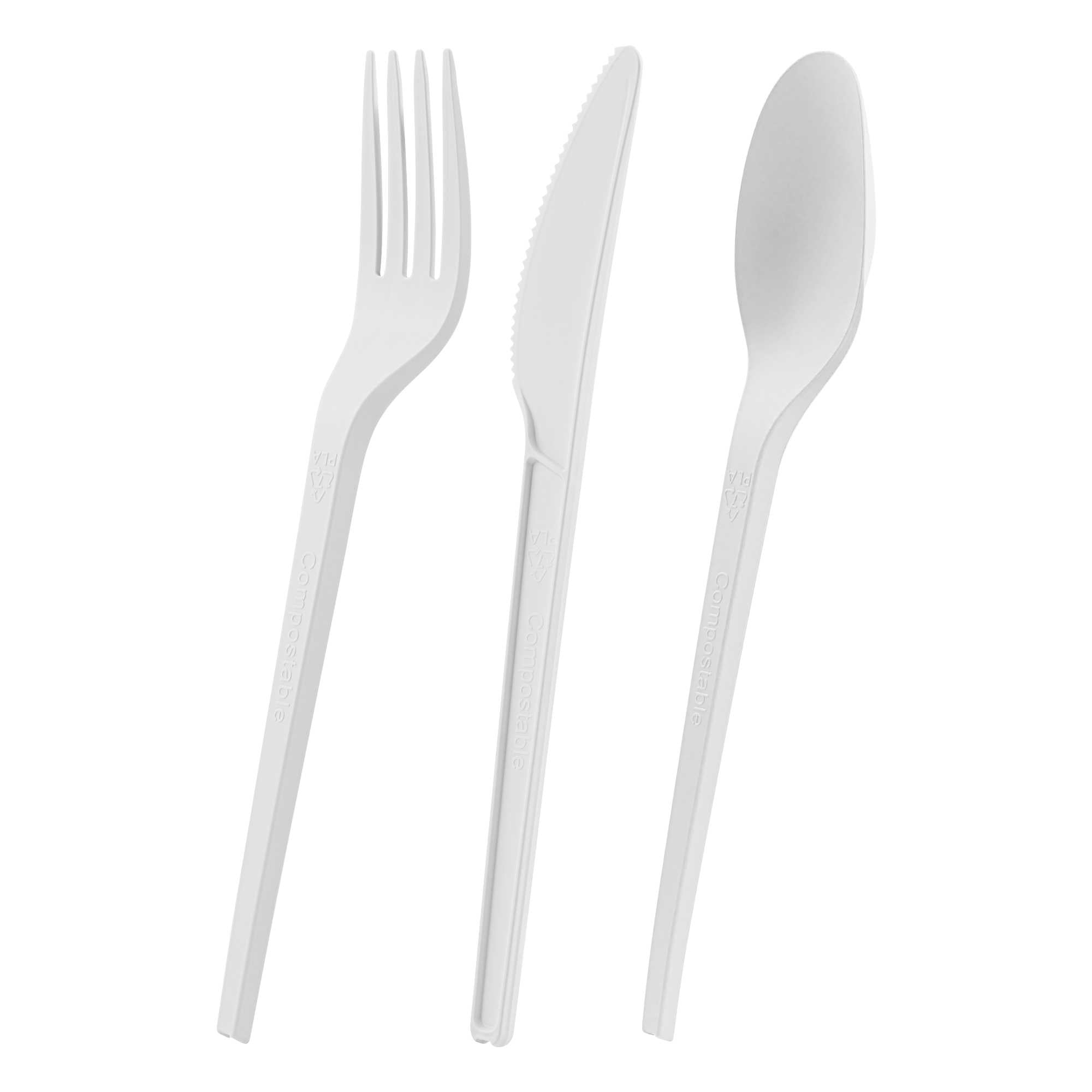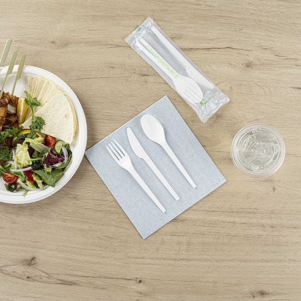 WHITE CPLA PLASTIC CUTLERY SET - COMPOSTABLE WRAPPER, HEAT-RESISTANT