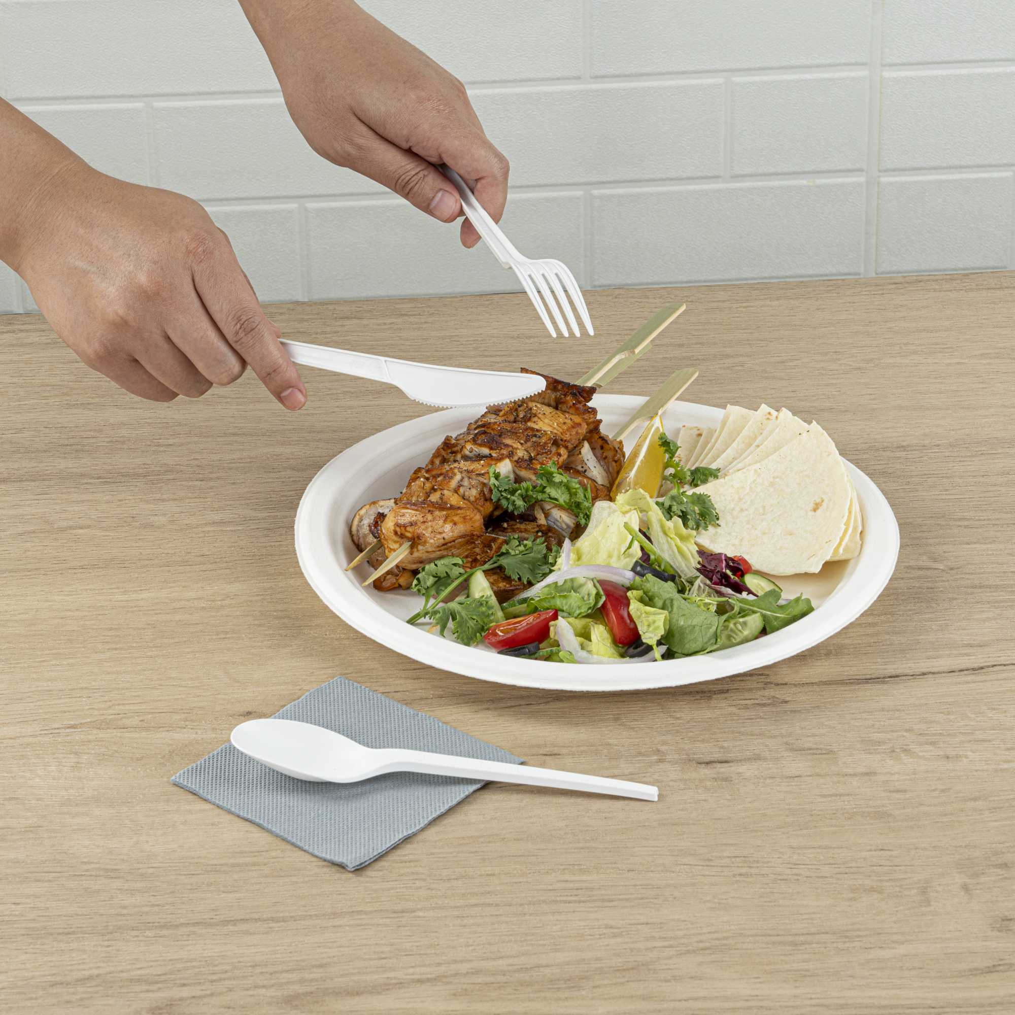 Heavyweight construction of these CPLA cutlery holds up to hearty meals to prevent snaps or breaks. Their sturdy design provides the same strength and convenience of ordinary plastic.