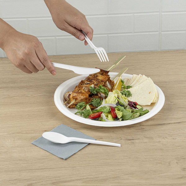 Each of our plastic cutlery utensils is shipped in a variety of sizes and count boxes for you to choose your favorite. These cornstarch utensils come in handy for significant events such as birthday parties, holiday dinners, picnics, and more.