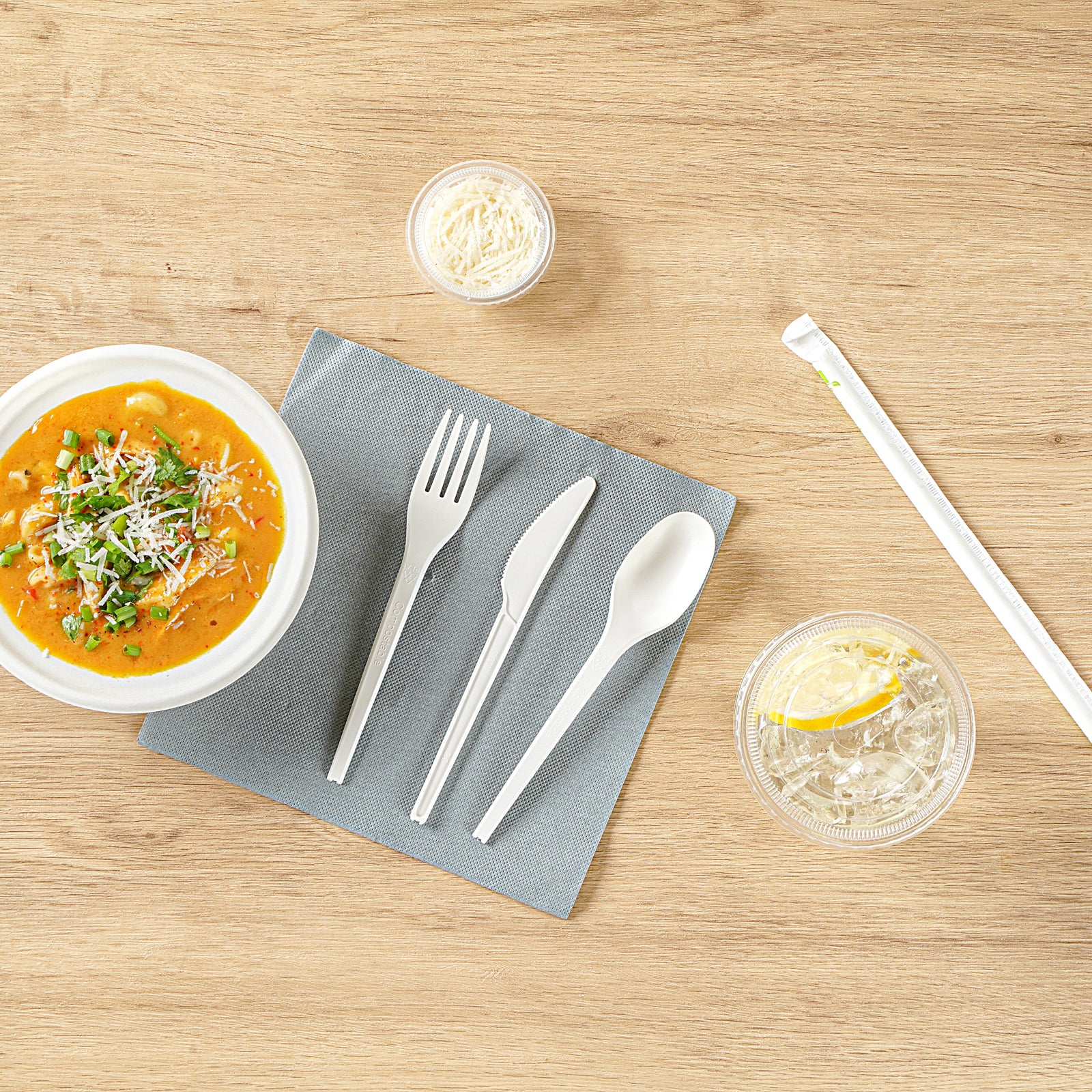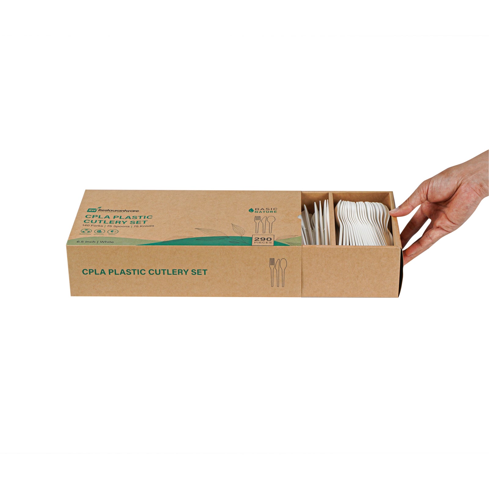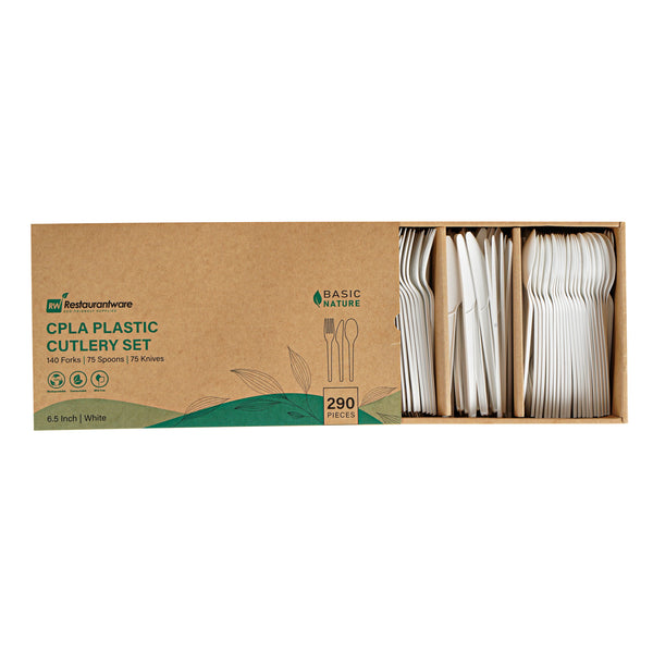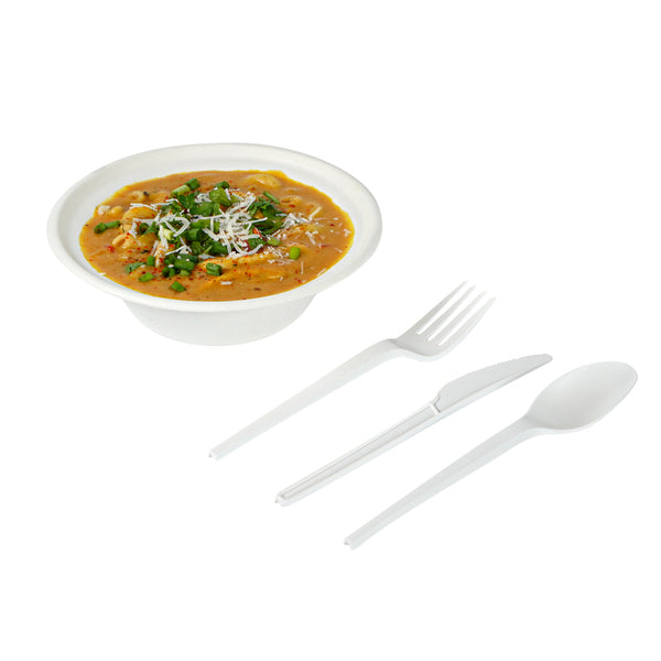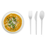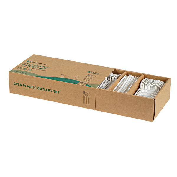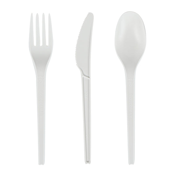 WHITE CPLA PLASTIC CUTLERY SET - HEAT-RESISTANT, COMPOSTABLE