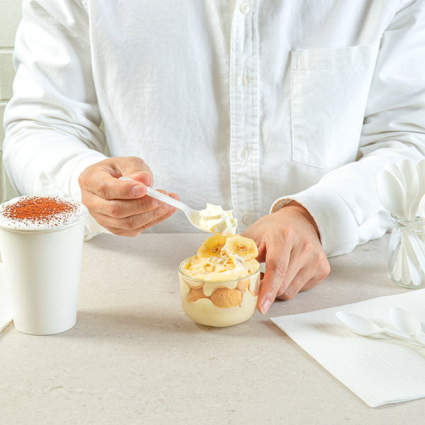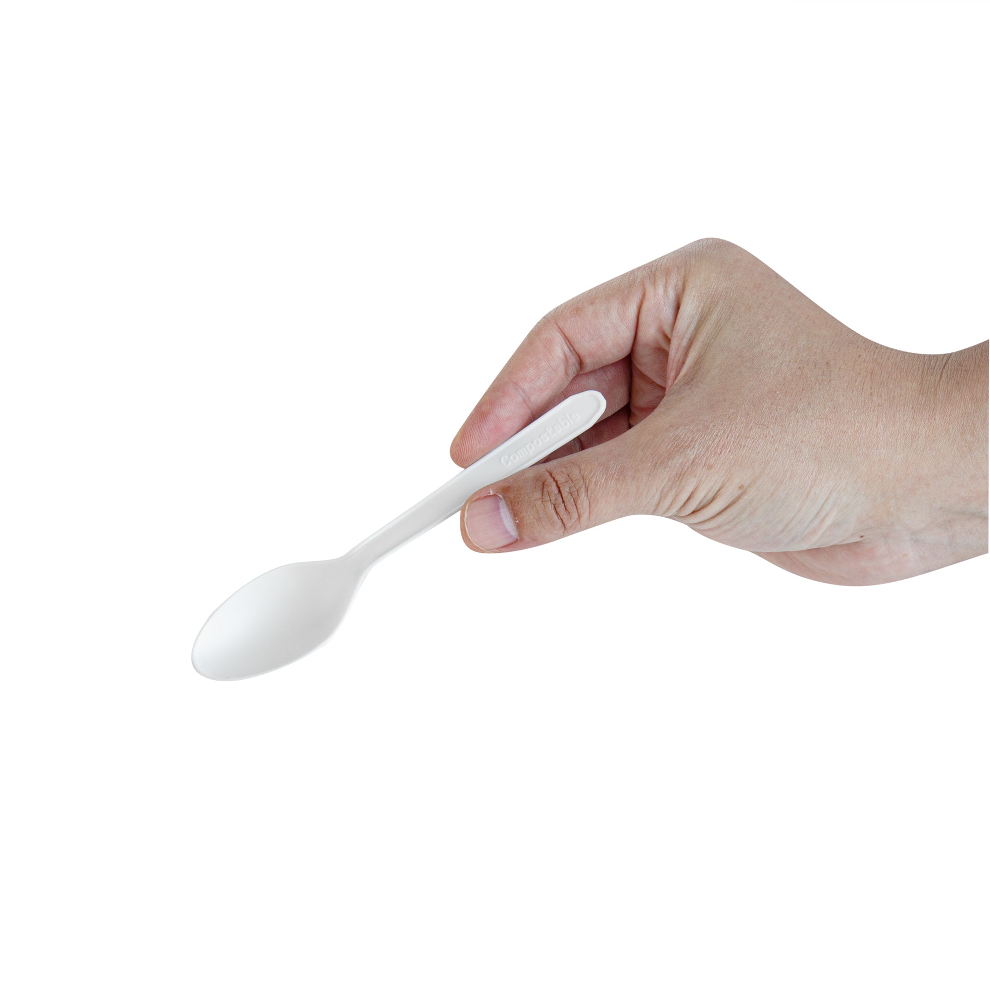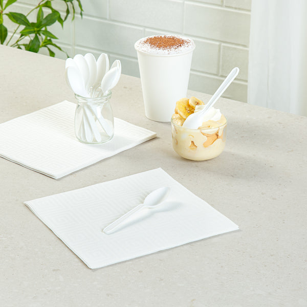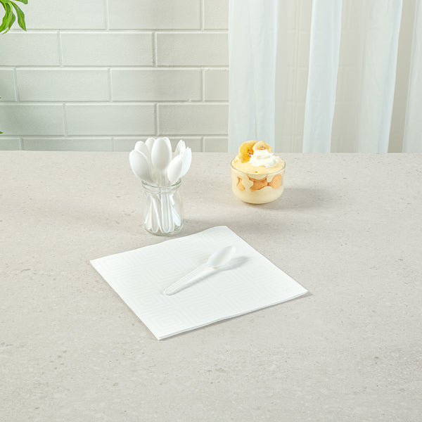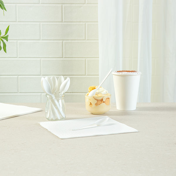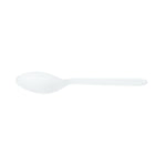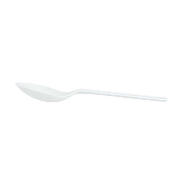 WHITE CPLA PLASTIC DESSERT SPOON - HEAT-RESISTANT, COMPOSTABLE