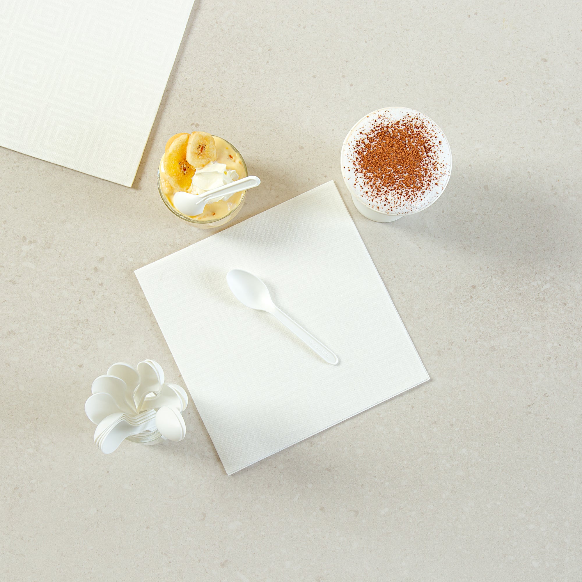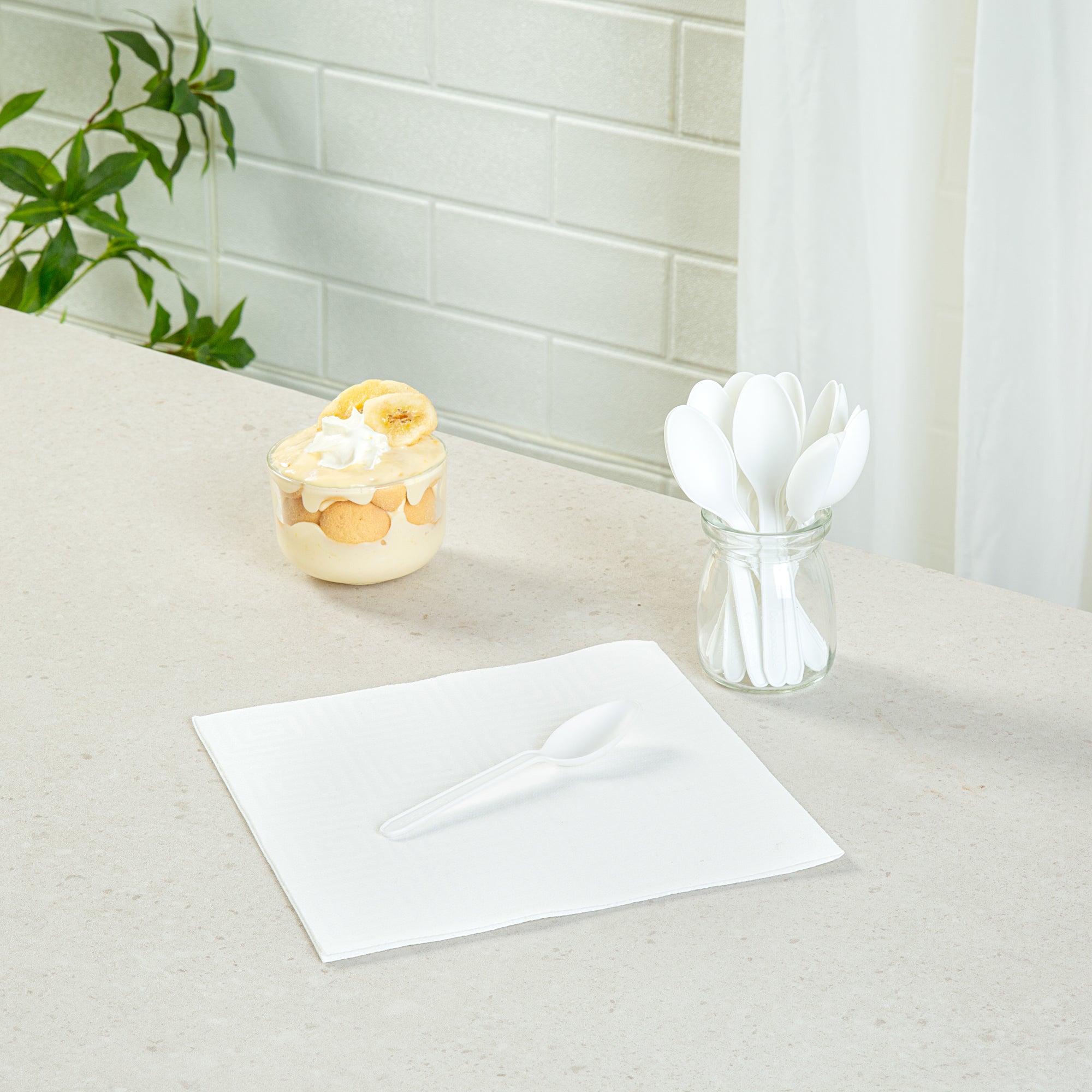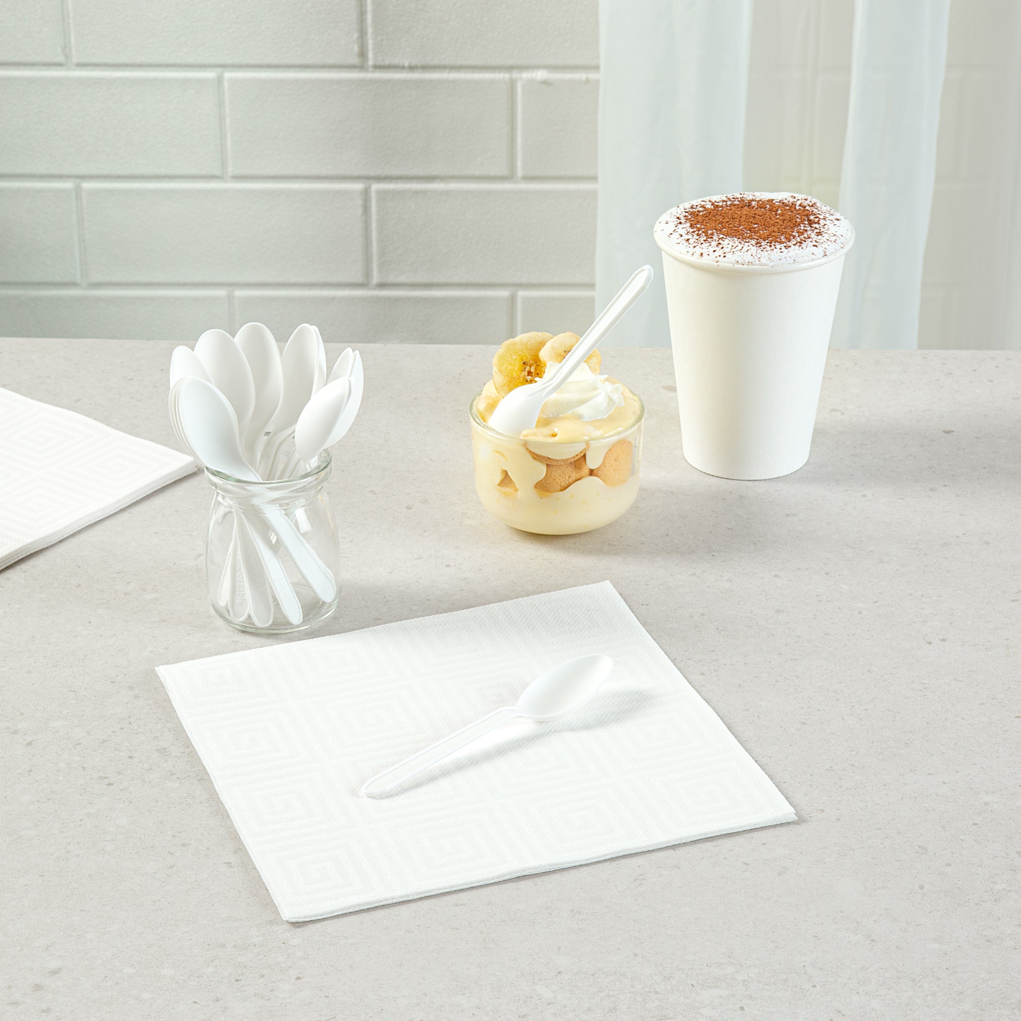 WHITE CPLA PLASTIC DESSERT SPOON - HEAT-RESISTANT, COMPOSTABLE