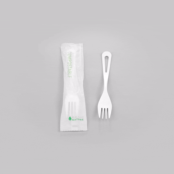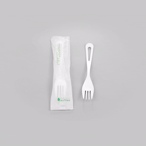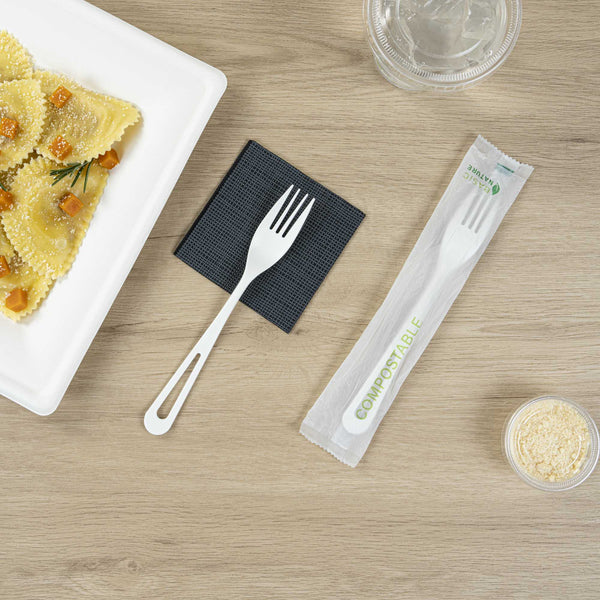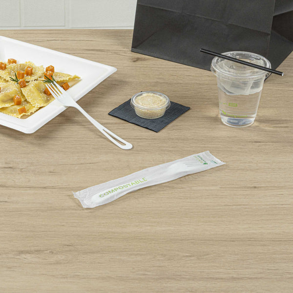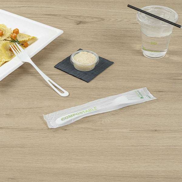 WHITE CPLA PLASTIC FORK - COMPOSTABLE WRAPPER, HEAT-RESISTANT