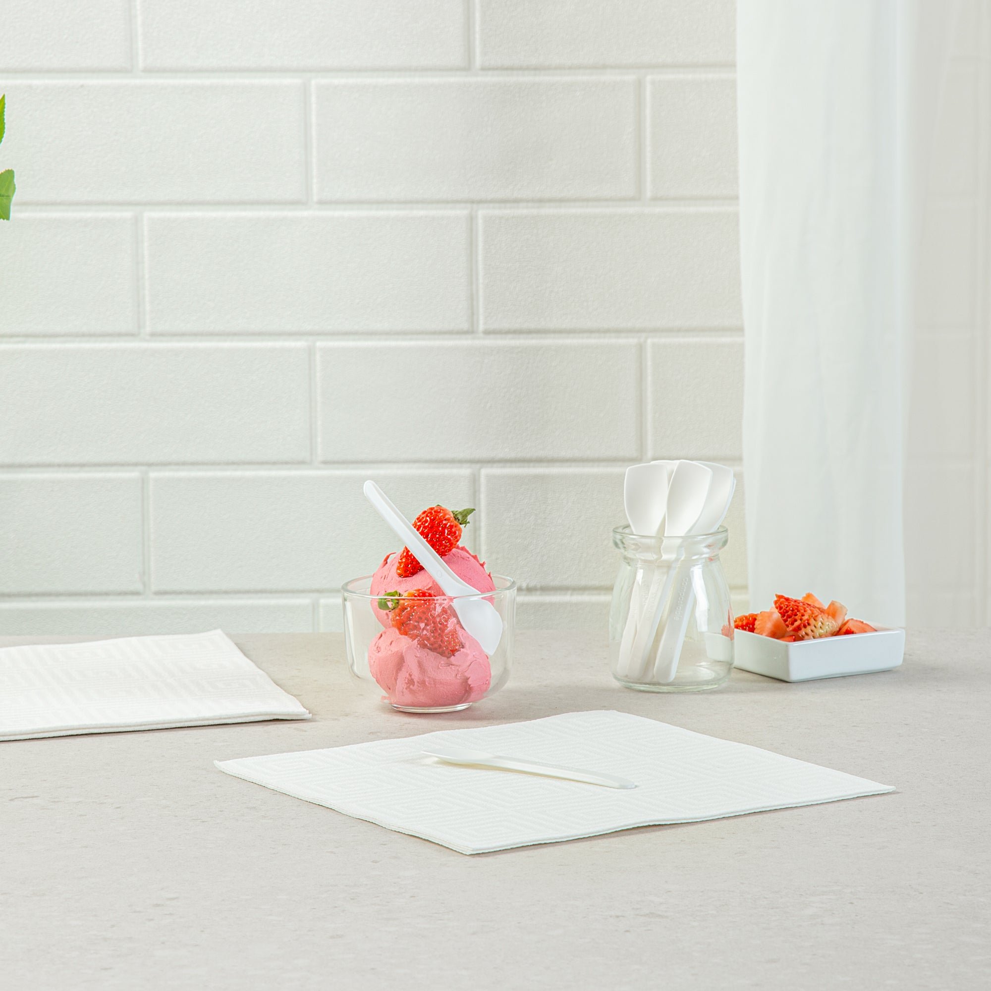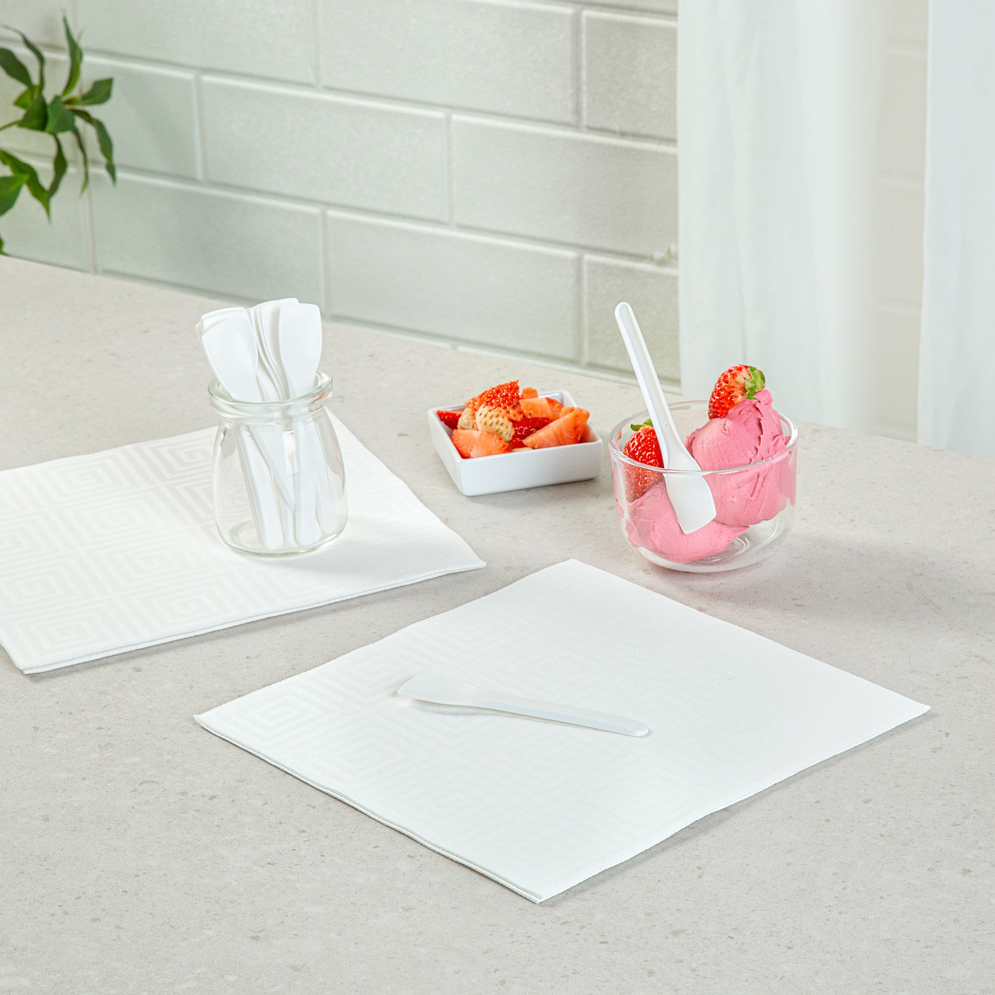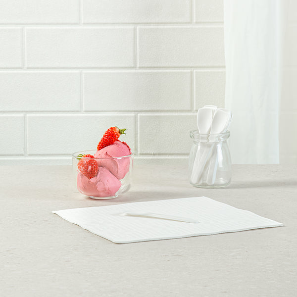 Enhance your sustainable foodservice offerings with eco-friendly solutions. The Basic Nature Compostable Tasting Spoon is a versatile tool, perfect for a variety of culinary applications, from ice cream to yogurt. Made from plant-based CPLA, this compostable tasting spoon is commercially compostable, significantly reducing landfill waste. Its heat tolerance makes it ideal for serving hot soups, ensuring safety and functionality in diverse settings. Measuring 4 inches in length, its multipurpose design fits a range of dessert and appetizer presentations, making it an excellent small ice cream spoon for catering events. The dessert spoon is also sturdy and reliable, crafted to withstand both cold and hot food environments, providing a seamless dining experience. Elevate your eco-conscious offerings and impress guests with sustainable choices. Each order includes 100 Basic Nature Compostable Tasting Spoons.