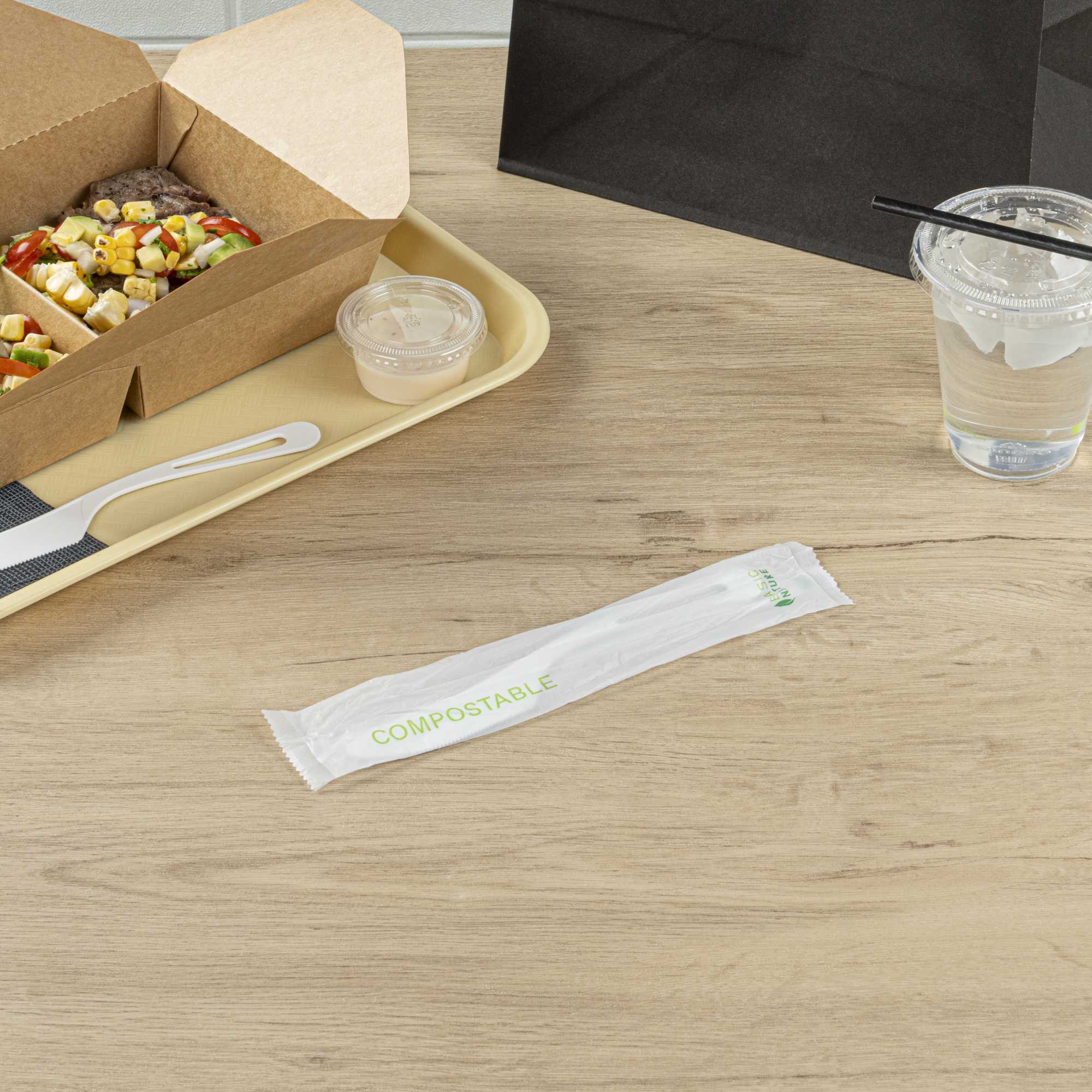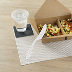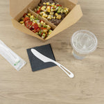 Made from PLA, a cornstarch-based bioplastic, these utensils are compostable with BPI certitifcation. Designed with an embossed Compostable message to remind guests of the correct way to dispose of these utensils.