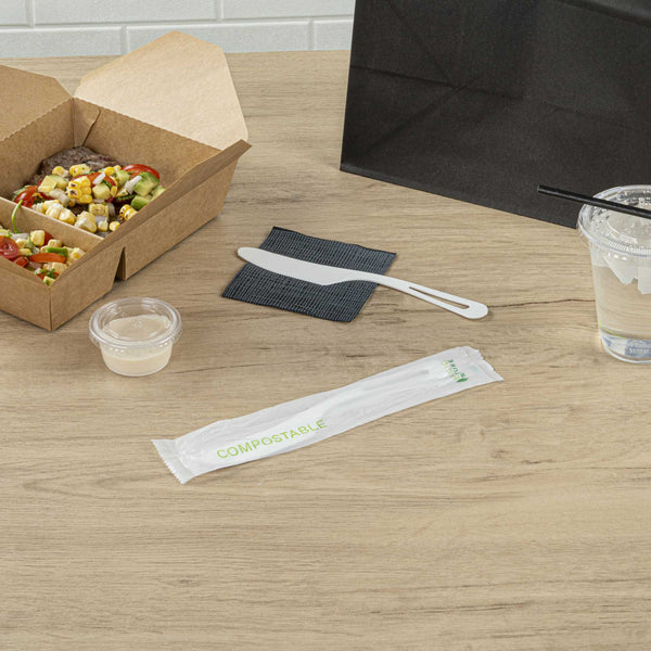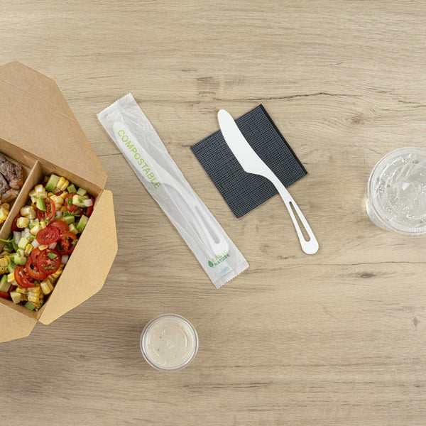 WHITE CPLA PLASTIC KNIFE - COMPOSTABLE WRAPPER, HEAT-RESISTANT