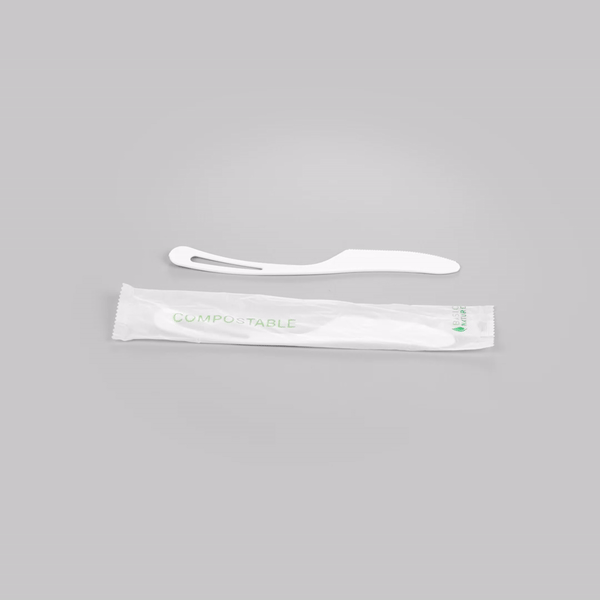 WHITE CPLA PLASTIC KNIFE - COMPOSTABLE WRAPPER, HEAT-RESISTANT