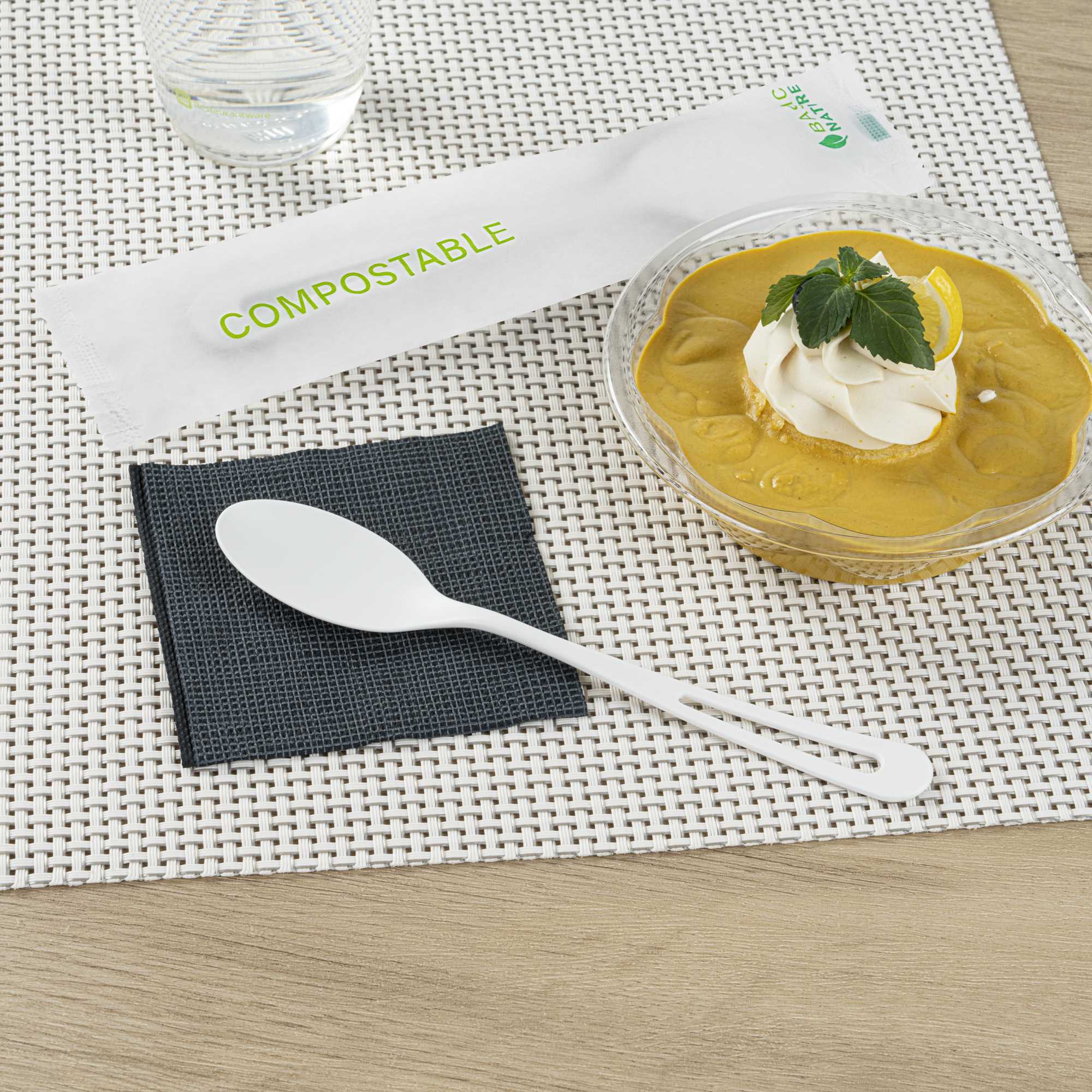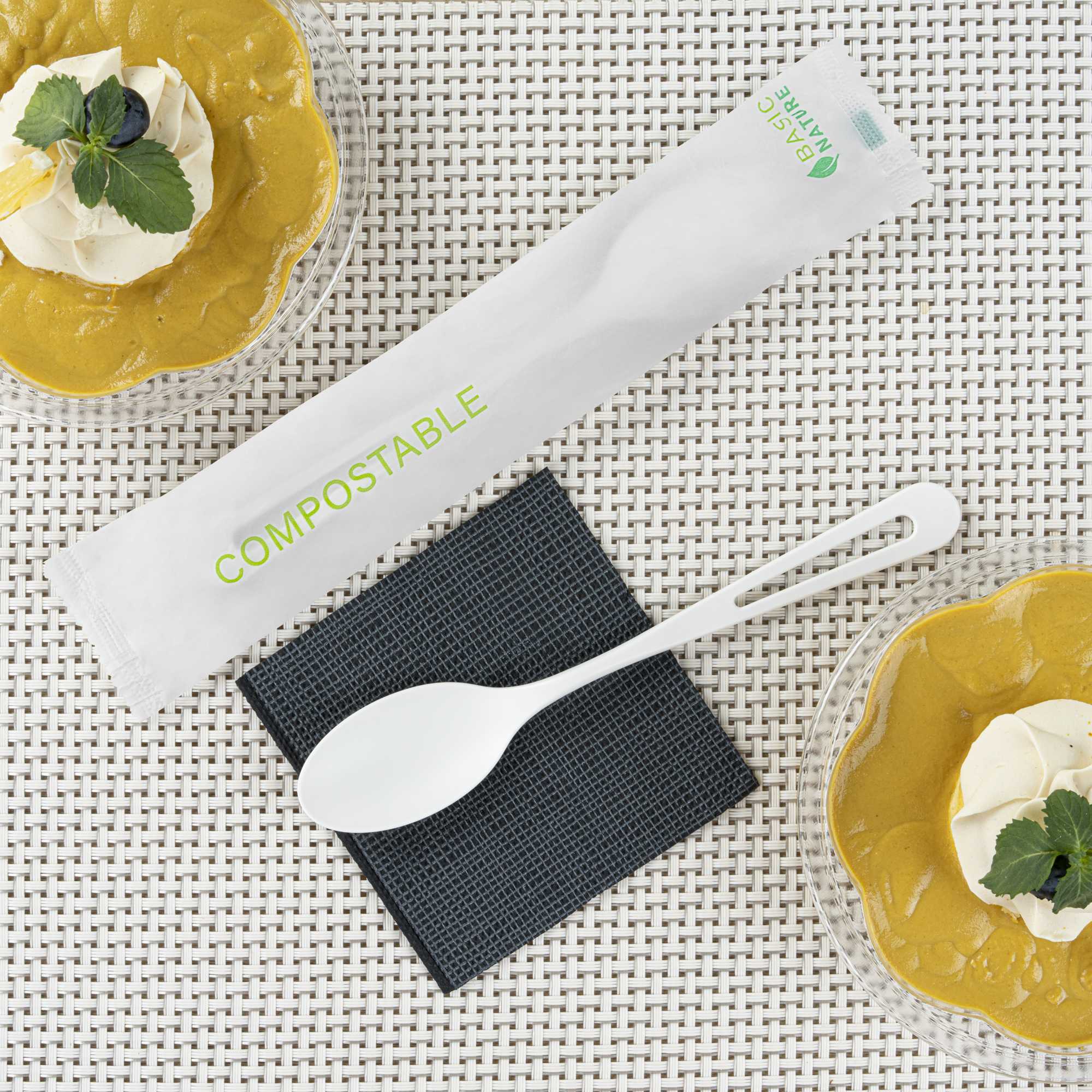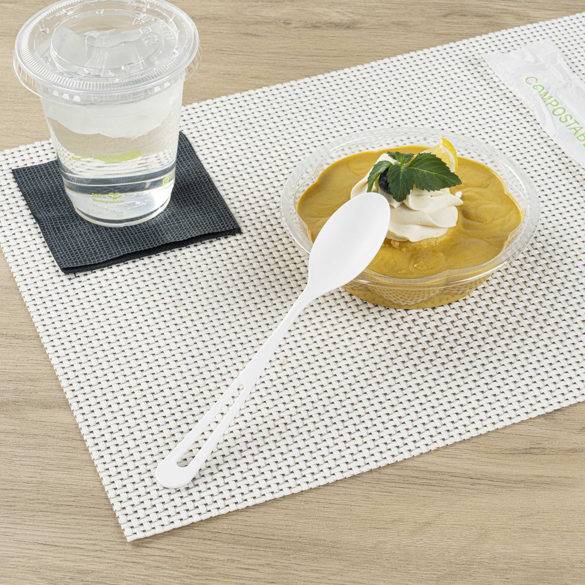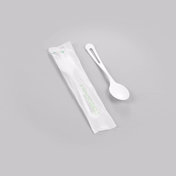WHITE CPLA PLASTIC SPOON - COMPOSTABLE WRAPPER, HEAT-RESISTANT