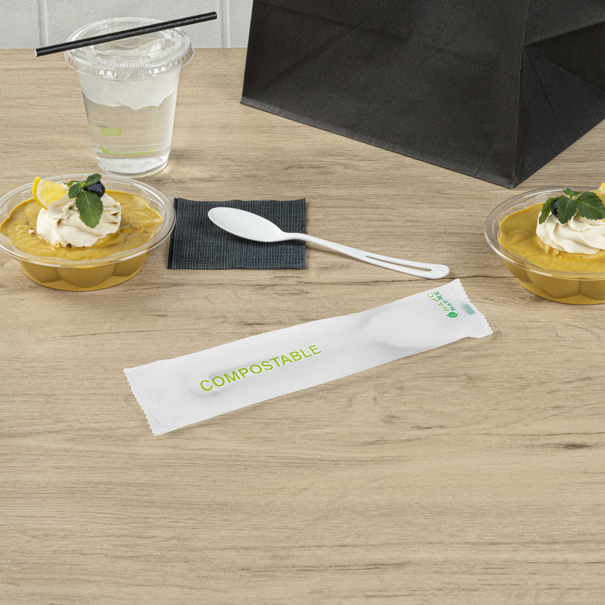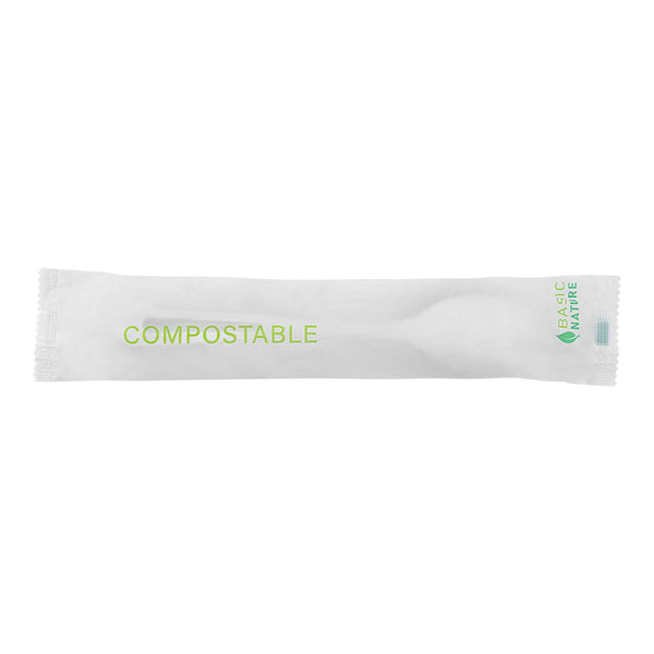 Made from PLA, a cornstarch-based bioplastic, these utensils are compostable with BPI certitifcation. Designed with an embossed Compostable message to remind guests of the correct way to dispose of these utensils.