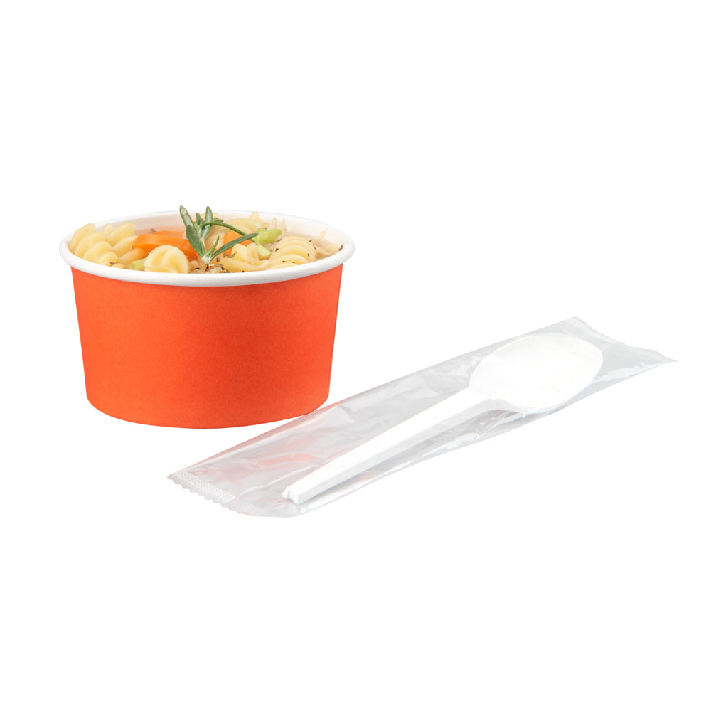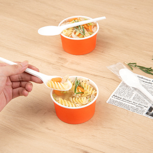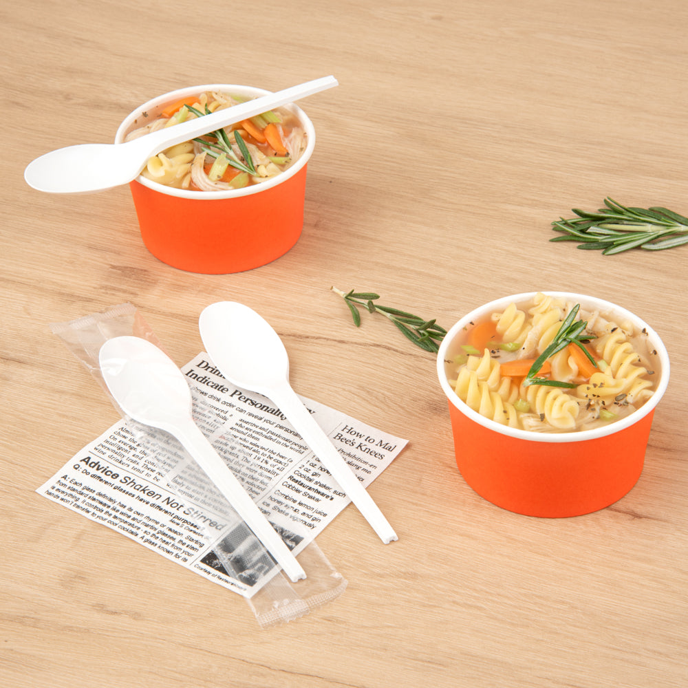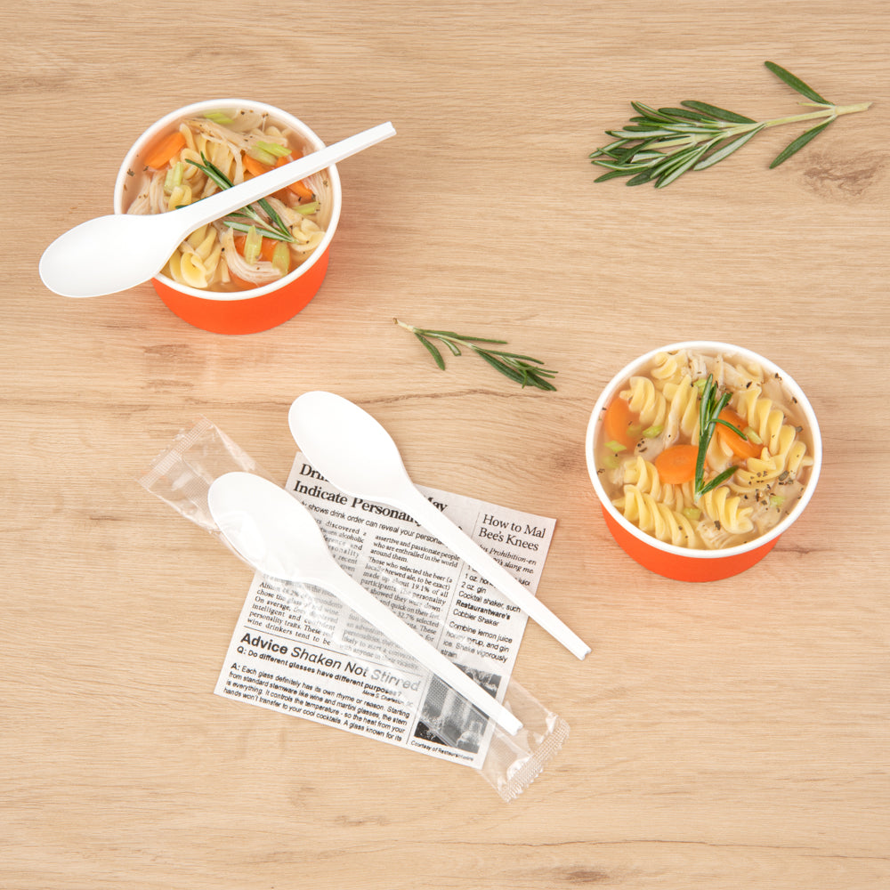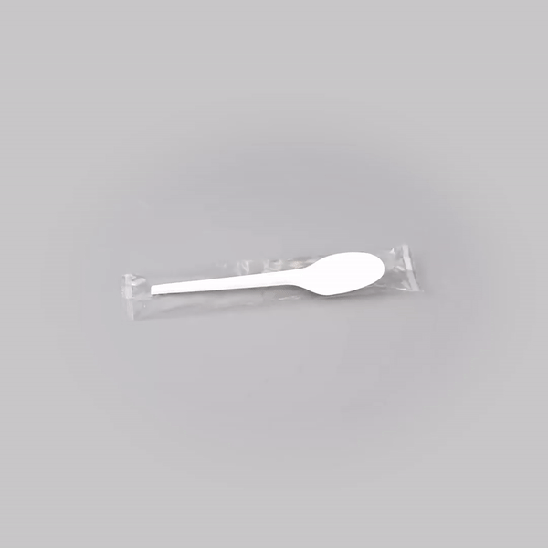 WHITE CPLA PLASTIC SPOON - WRAPPED, HEAT-RESISTANT, COMPOSTABLE