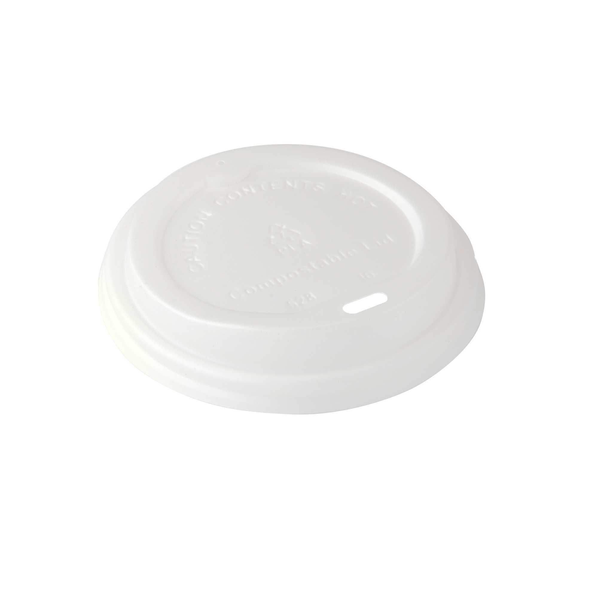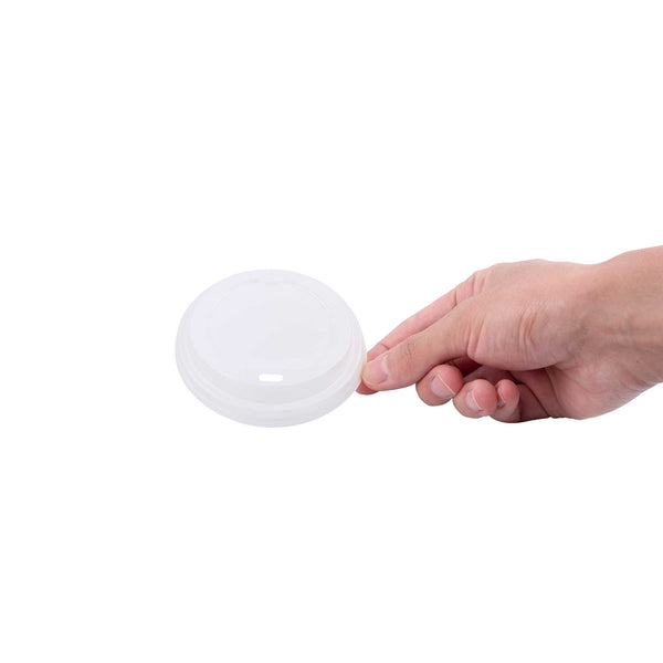 WHITE PLA COFFEE CUP LID - FITS 8, 12, 16 AND 20 OZ, COMPOSTABLE