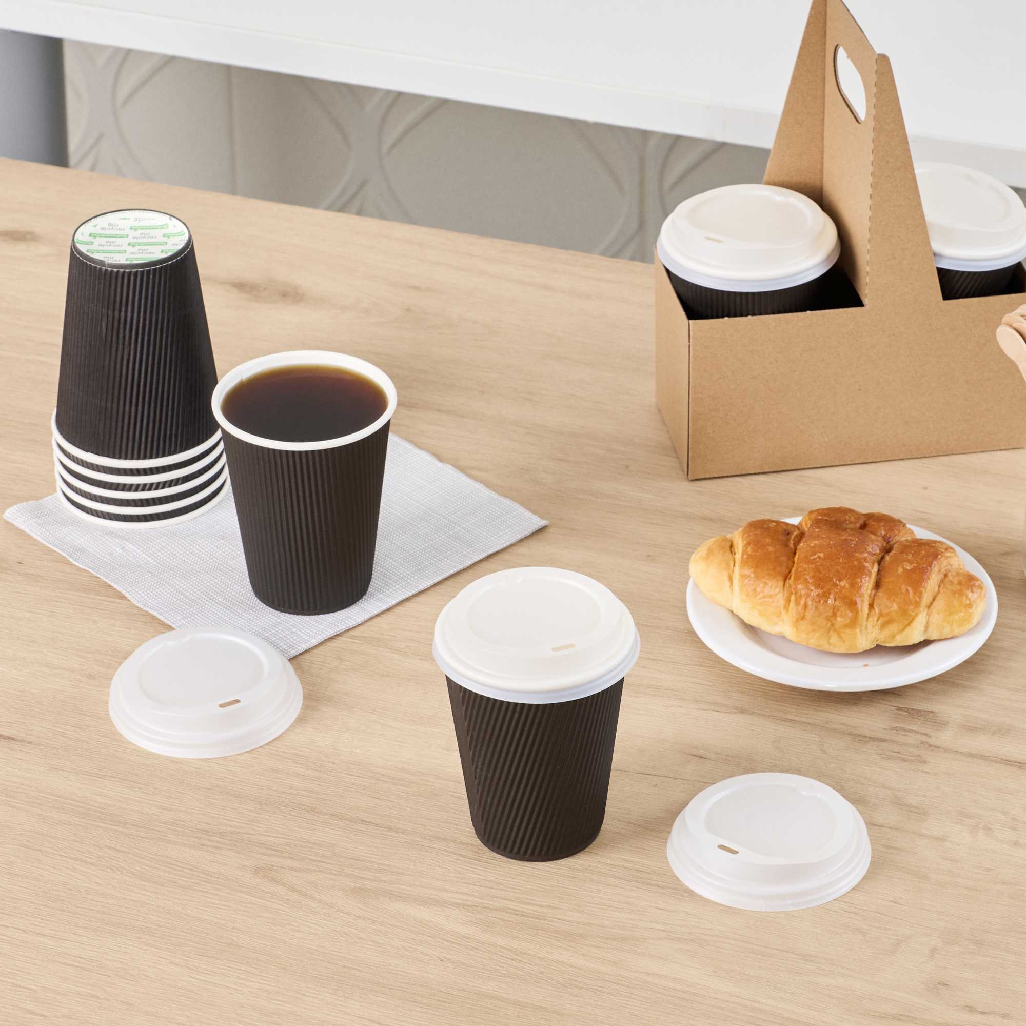 Premium plastic lids snugly fit on coffee cups without splitting and won’t break while in use. No more coffee stains or spills on your clothes!