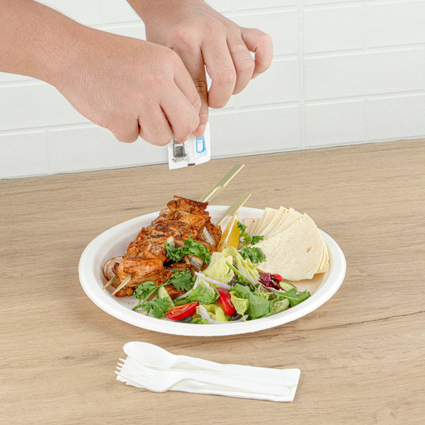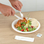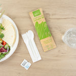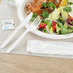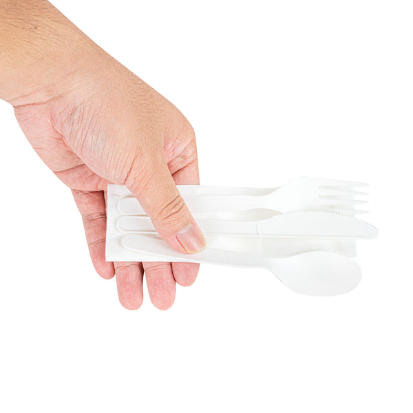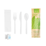 WHITE PLA PLASTIC CUTLERY SET - WITH NAPKIN AND SALT / PEPPER PACKETS