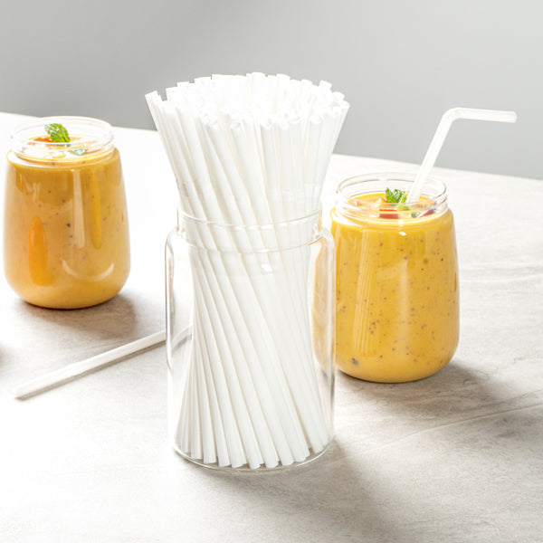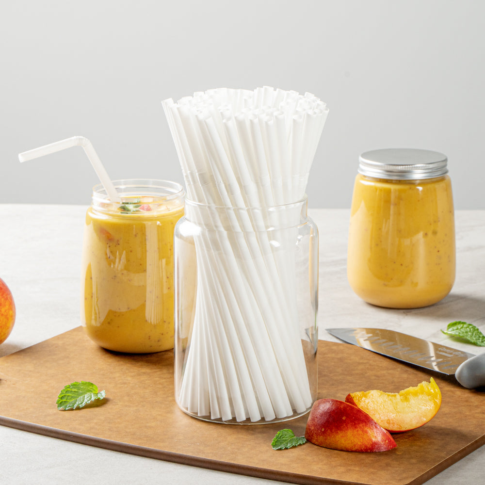 WHITE PLA PLASTIC / PBAT PLASTIC STRAW - FLEXIBLE, COMPOSTABLE