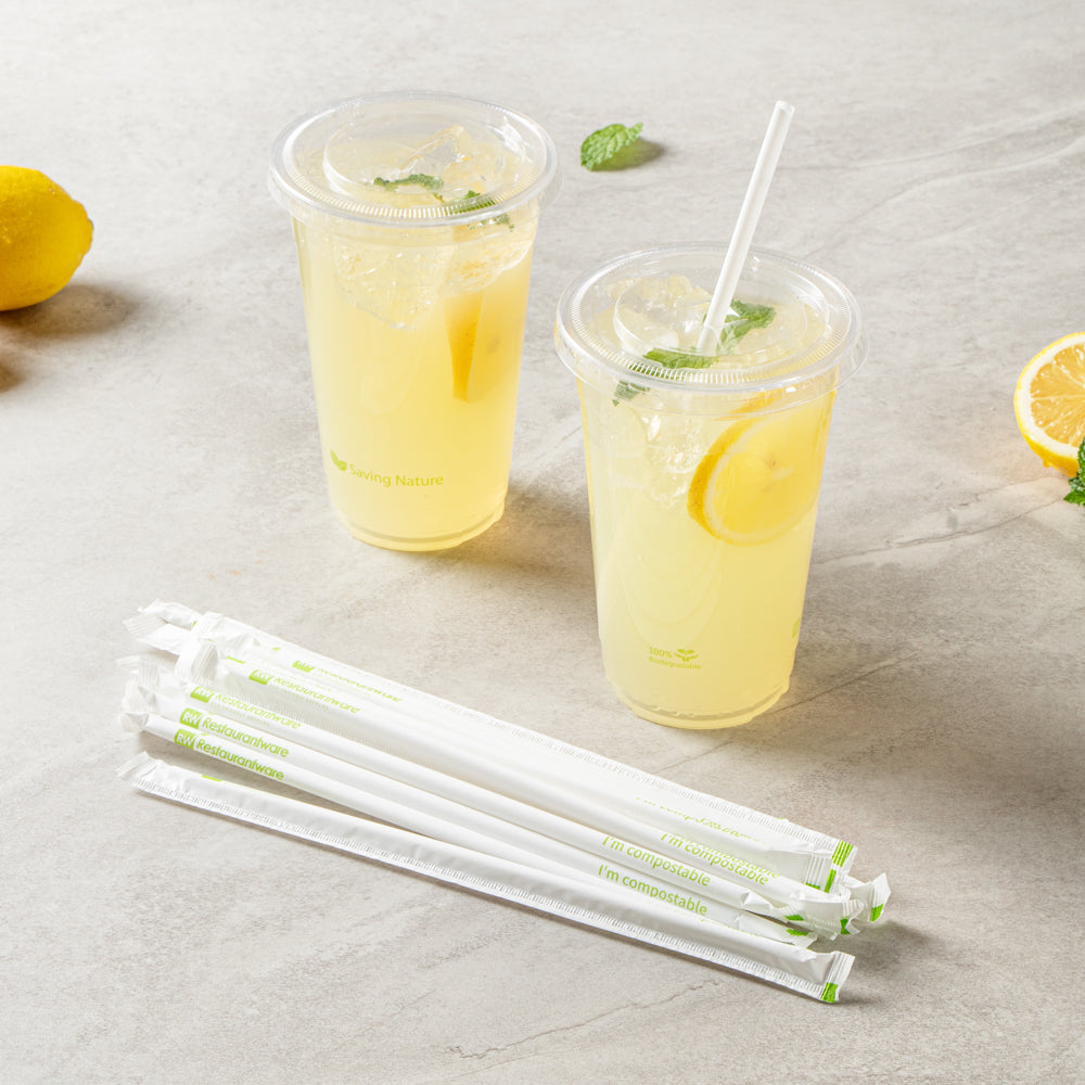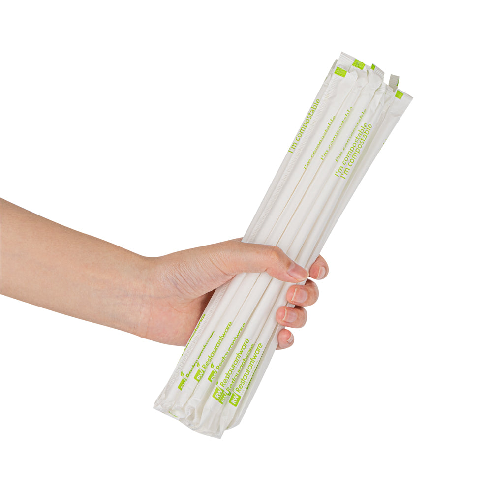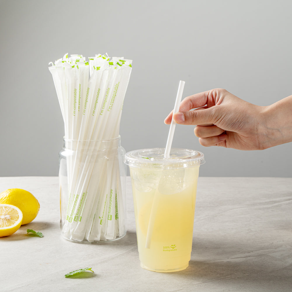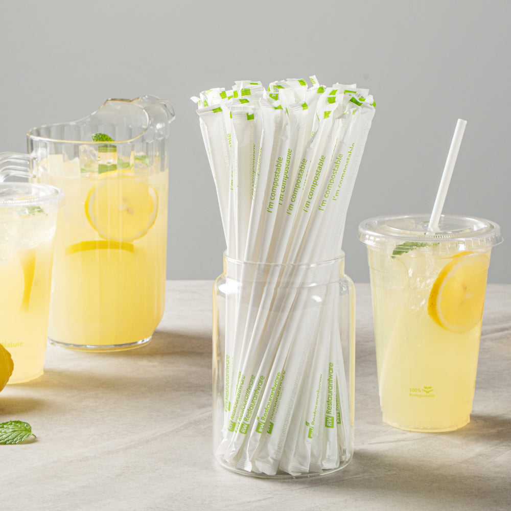 WHITE PLA PLASTIC / PBAT PLASTIC STRAW - WRAPPED, COMPOSTABLE