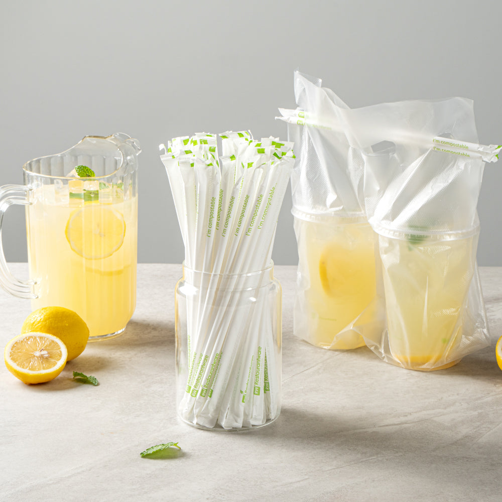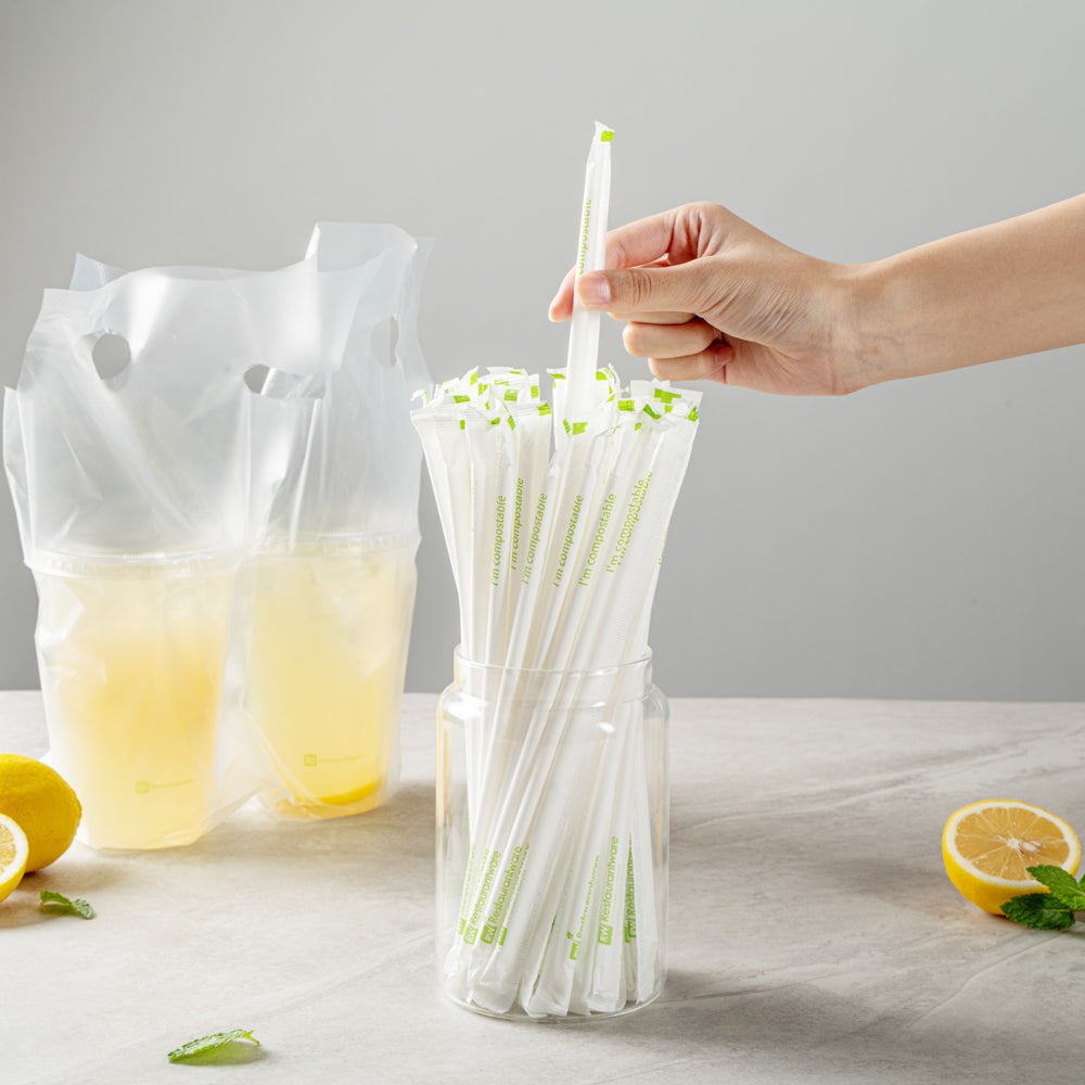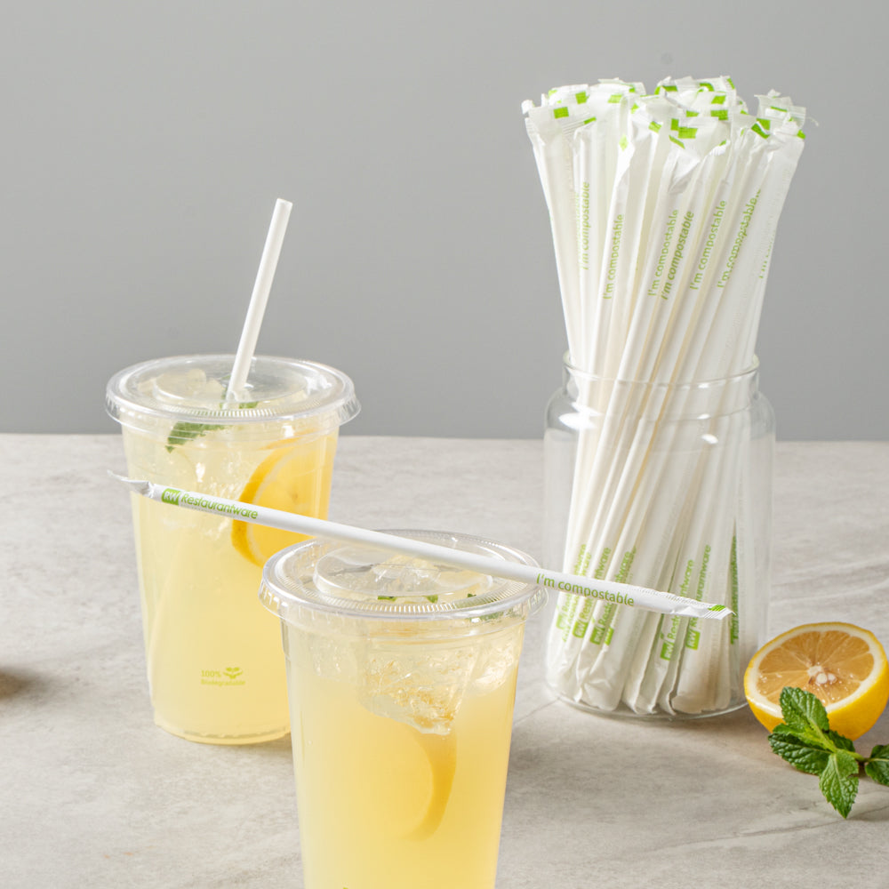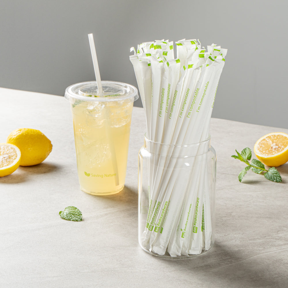 WHITE PLA PLASTIC / PBAT PLASTIC STRAW - WRAPPED, COMPOSTABLE
