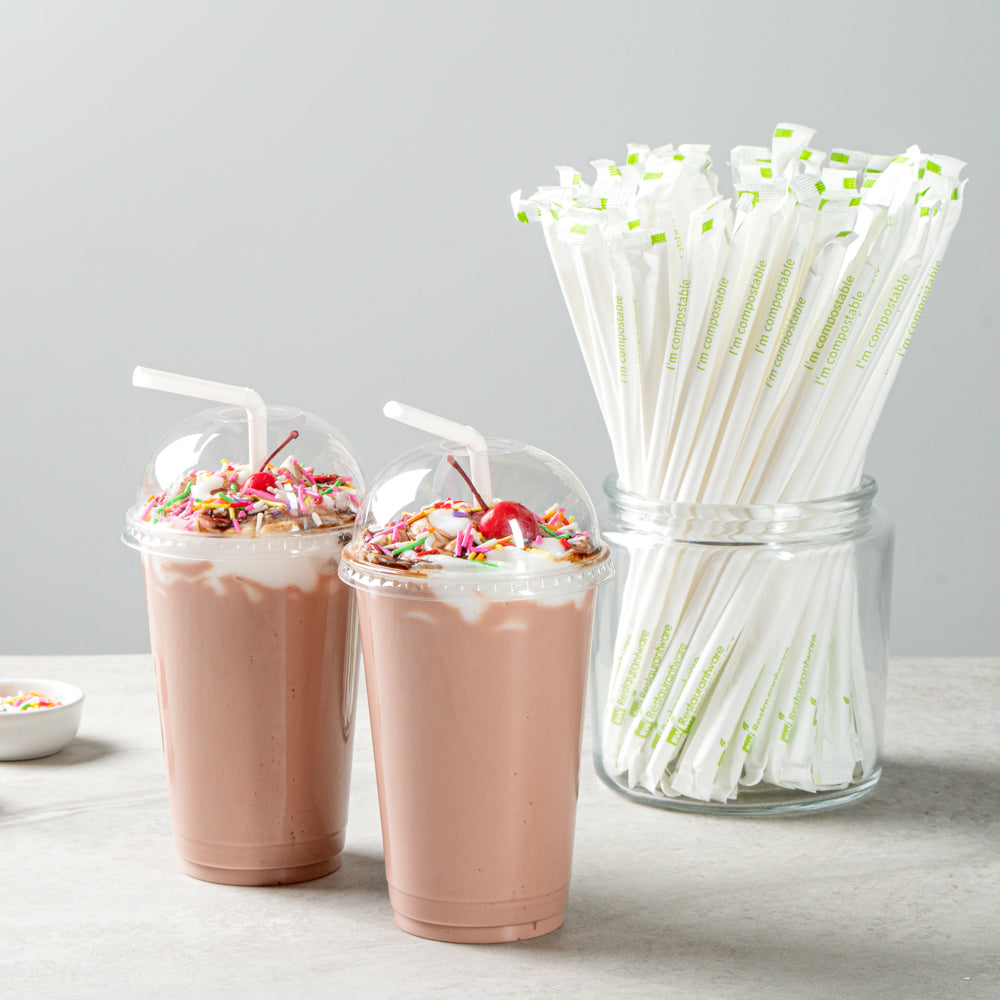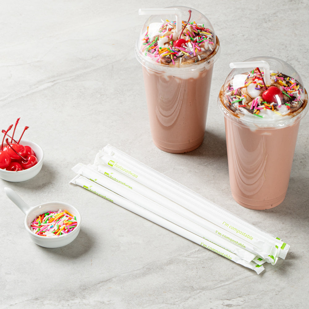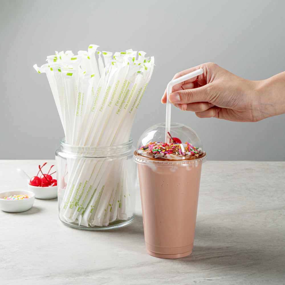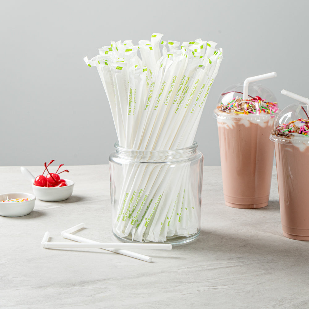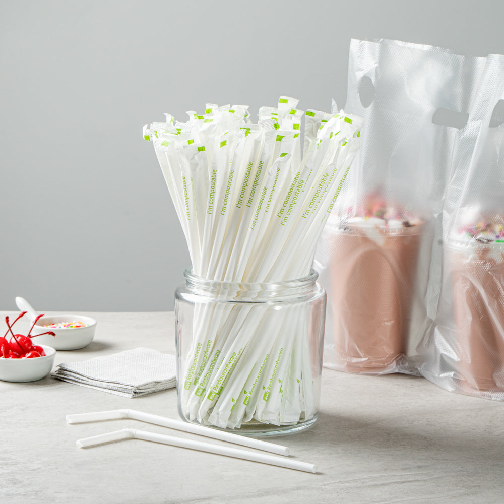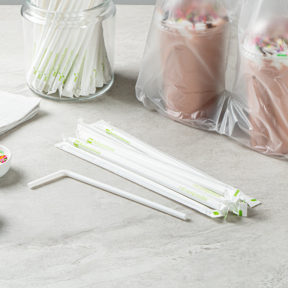 WHITE PLA PLASTIC/PBAT PLASTIC STRAW - WRAPPED, FLEXIBLE, COMPOSTABLE