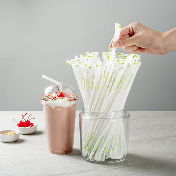 WHITE PLA PLASTIC/PBAT PLASTIC STRAW - WRAPPED, FLEXIBLE, COMPOSTABLE