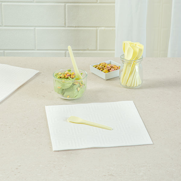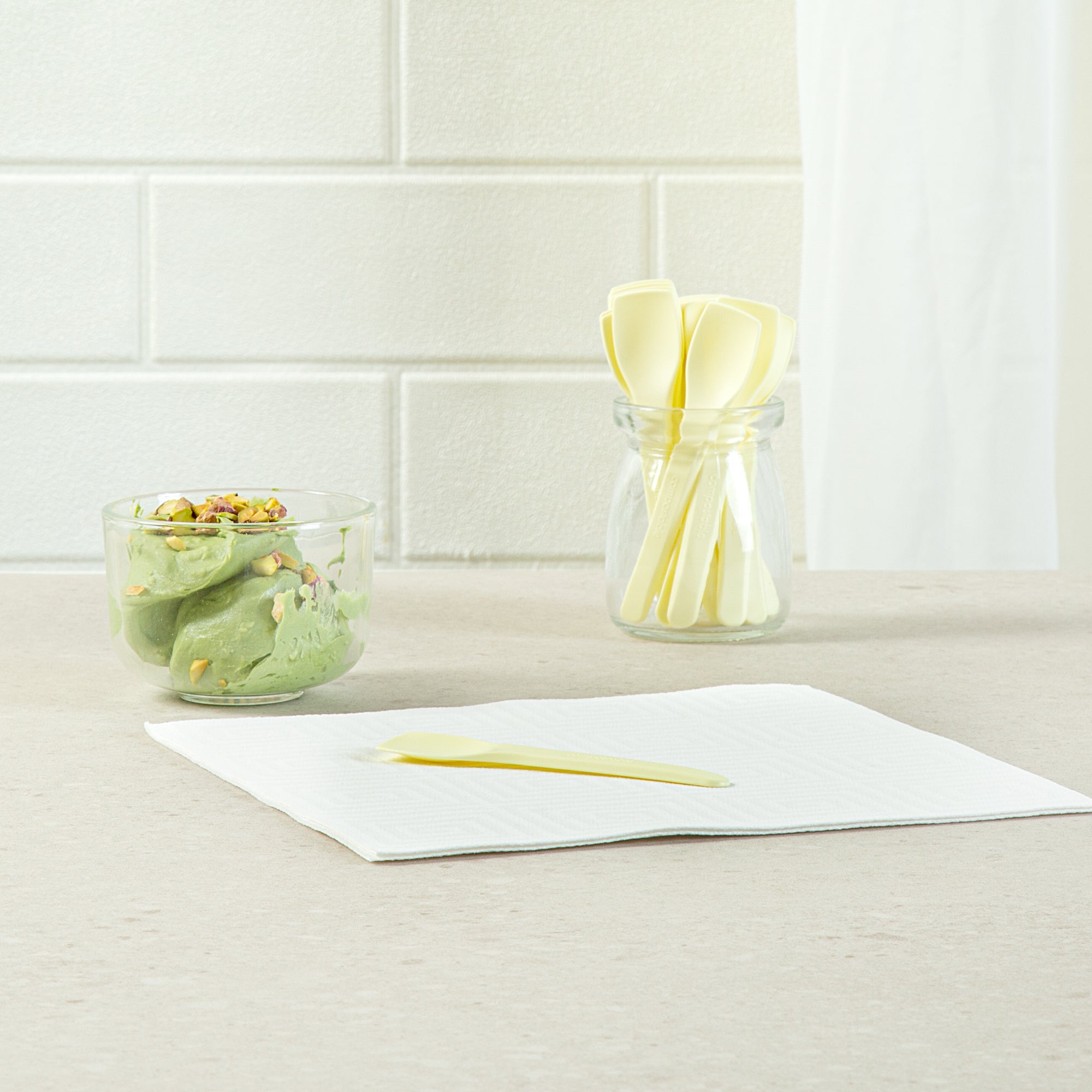 Enhance your dessert presentation with our Basic Nature Yellow CPLA Plastic Ice Cream Spoons. Crafted from durable CPLA plastic, these compostable tasting spoons offer exceptional heat-resistance, allowing you to serve hot and cold foods, from steaming appetizers to chilled gelato, without compromising on performance. Being BPA-free, these yellow ice cream spoons meet modern safety standards to ensure safe and reliable use. These plastic ice cream spoons are tapered for a comfortable grip and designed to withstand use without breaking. Fully freezer safe, these ice cream spoons are perfect for scooping frozen desserts effortlessly. Compact and versatile, these tasting spoons are perfect for serving small portions of yogurt, pudding, fruit cups, spreads, or other treats. Measuring 4 inches in length, these plastic ice cream spoons are the ideal size for various applications. Sold in a 100 count box.