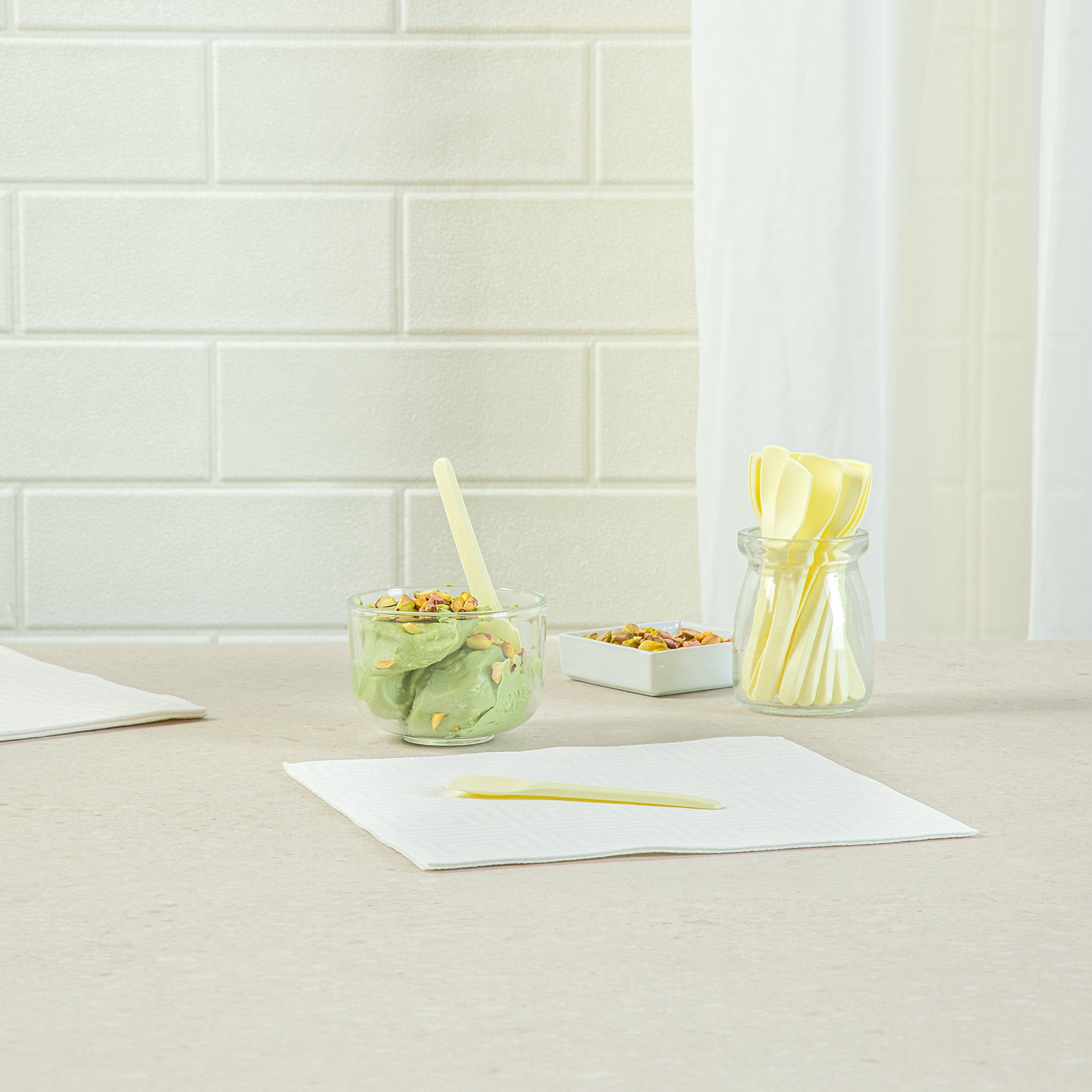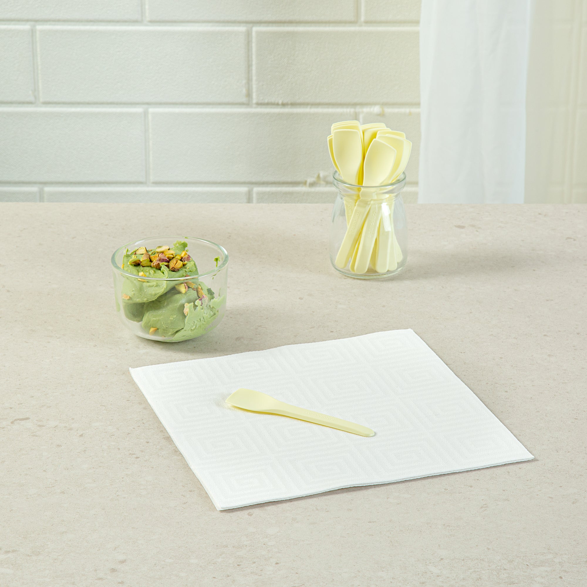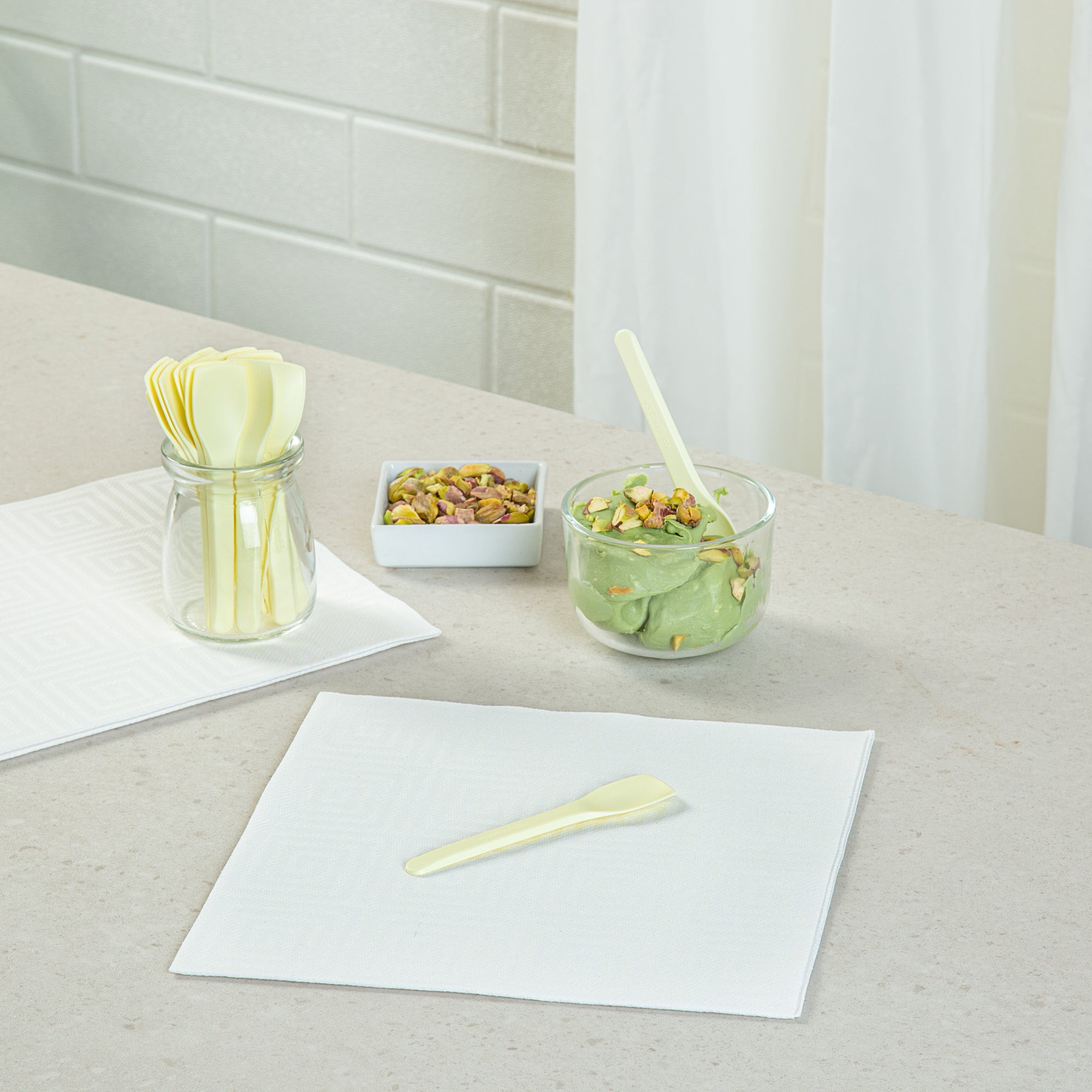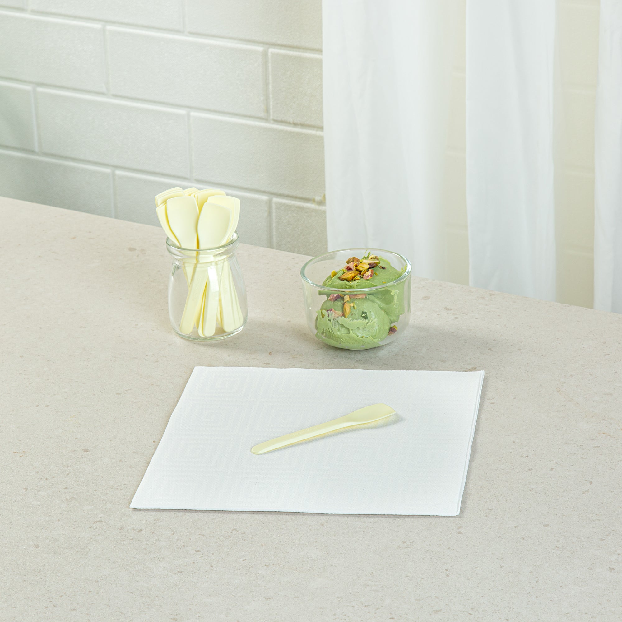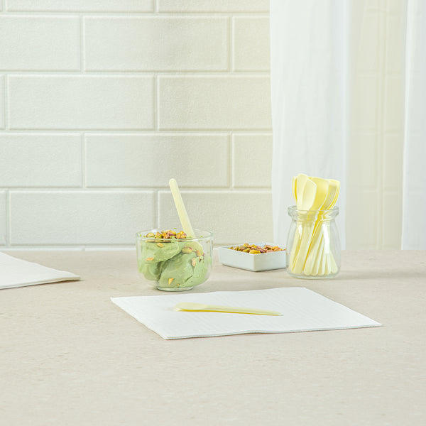 Enhance sustainability and versatility in your dessert service. Basic Nature Compostable Ice Cream Tasting Spoons are crafted from plant-based CPLA material, providing a natural, renewable solution that is compostable, effectively reducing waste disposal costs for eco-conscious establishments. These compostable ice cream spoons are heat tolerant, making them ideal for sampling both hot foods like coffee and cold treats. With a length of 4 inches, these mini dessert spoons are perfectly sized for multipurpose use, fitting seamlessly into ice cream cups, yogurt parfaits, and a variety of desserts. Their vibrant yellow color adds a cheerful touch to any presentation, enhancing the visual appeal of your offerings. Elevate your service efficiency and sustainability with these eco-friendly options. Each order includes 1000 Basic Nature Compostable Ice Cream Tasting Spoons.