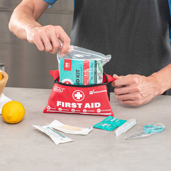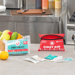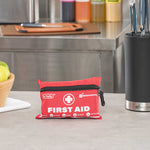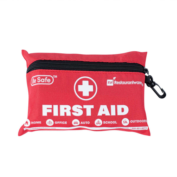 Be prepared for any emergency with our Be Safe 10-Person Class A Mini First Aid Kit. This compact red first aid kit is packed with essential medical supplies, making it ideal for travel, home, office, vehicles, camping, and workplace settings. Designed to treat minor injuries efficiently, it includes an emergency foil blanket, CPR respirator, and scissors, ensuring rapid response in urgent situations. The assortment of adhesive plasters, sterile gauze pads, bandages, wipes, and safety pins provides comprehensive coverage for cuts, scrapes, and sprains. Thoughtfully organized in a sturdy case, it also features items like a tourniquet, tweezers, gloves, and a first aid guide to aid both novice and trained responders. With its lightweight and portable design, this kit ensures peace of mind wherever you go. Measuring 7.48 inches in length by 5.32 inches in width by 2.36 inches in height, this all-in-one kit meets Class A standards for treating up to 10 individuals. Sold in a 1 count box.