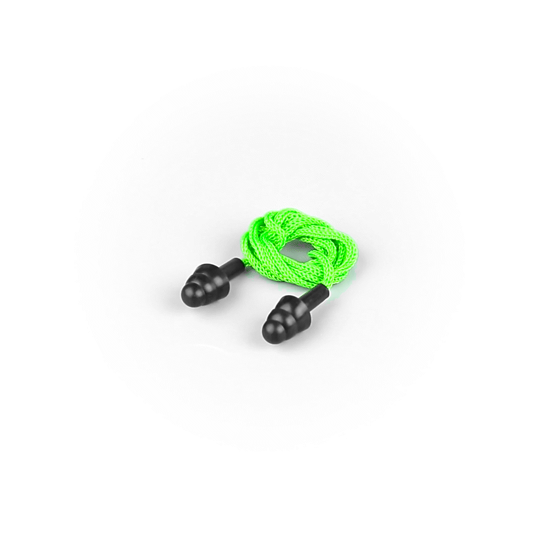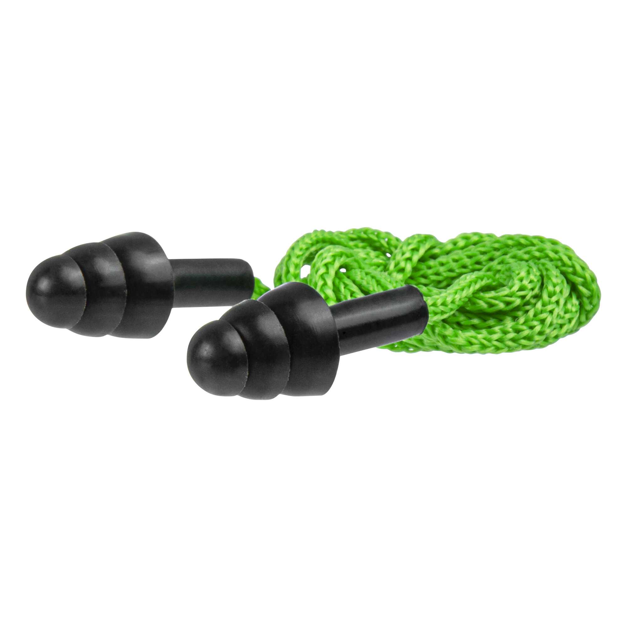 BLACK AND GREEN SILICONE CORDED EARPLUGS