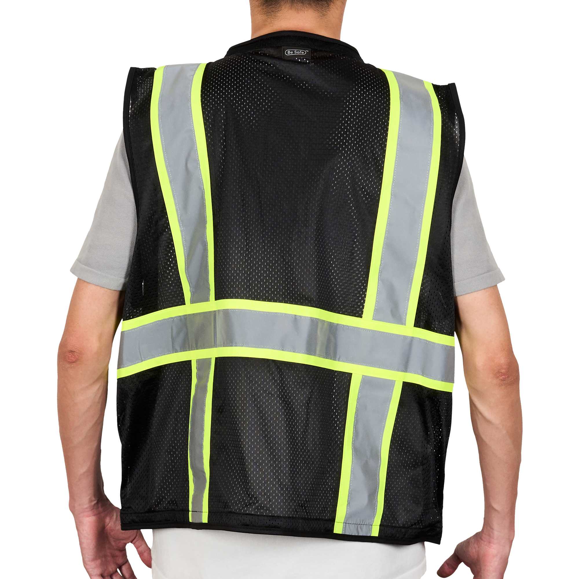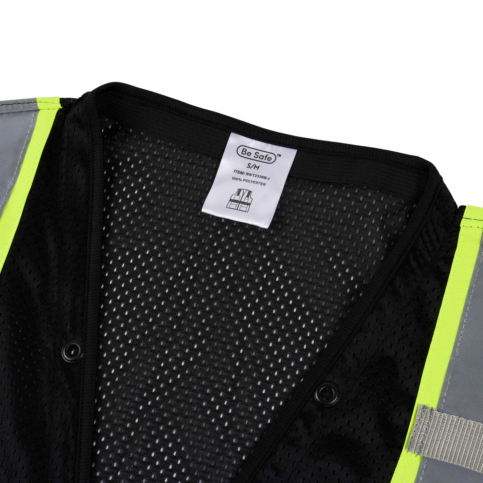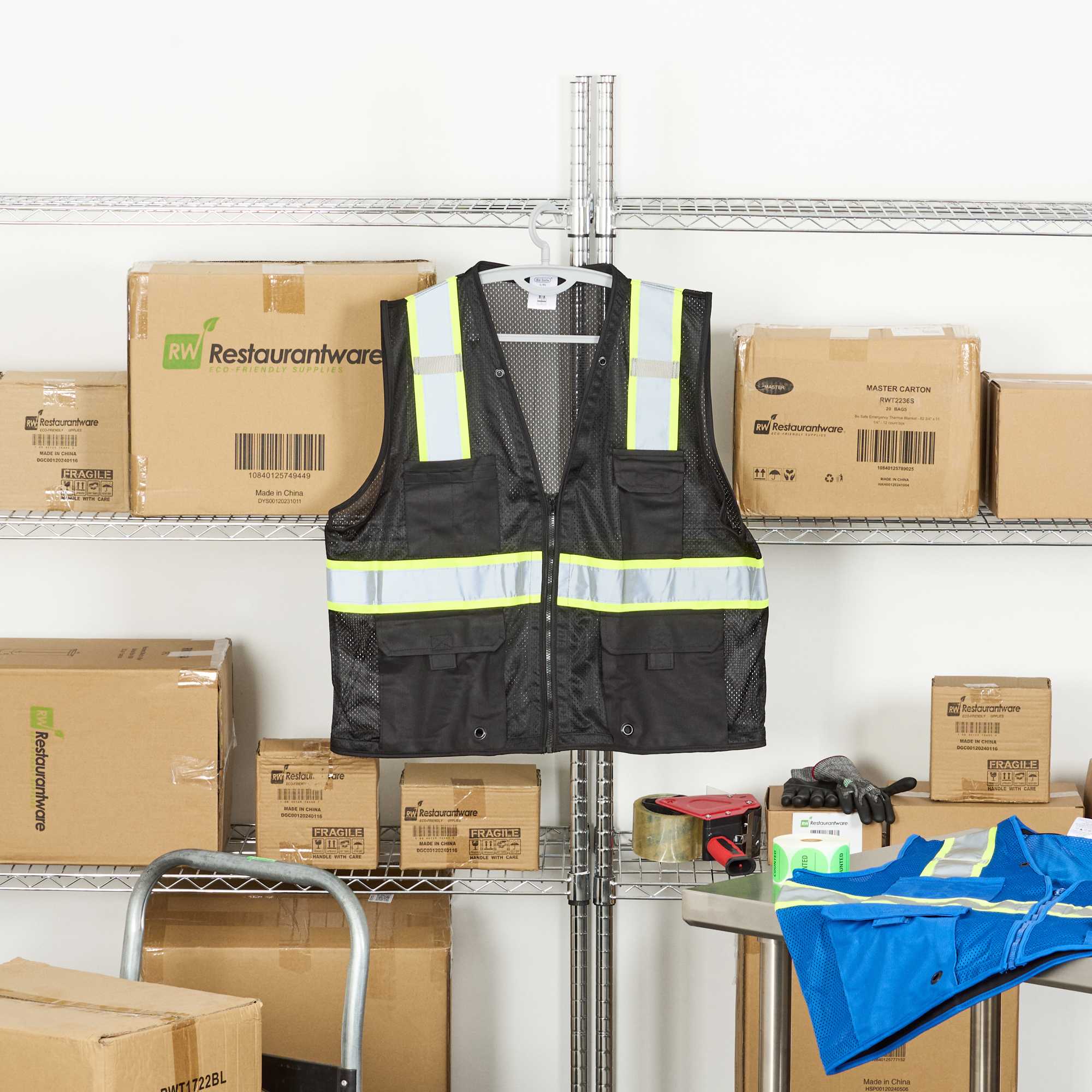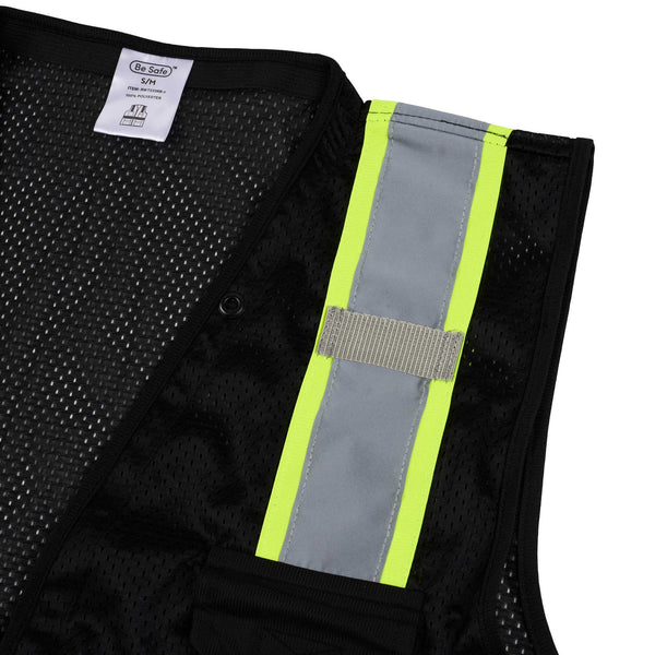 Enhance safety and visibility with our versatile mesh safety vest. The Be Safe Reflective Stripes reflective safety vest boasts silver reflective tapes that enhance visibility, ensuring optimal safety for event staff and warehouse workers. Designed with a zipper front closure, this reflective safety vest provides a secure and swift fit during busy operations. Equipped with multiple pockets, this safety vest with pockets efficiently organizes tools and accessories, streamlining workflow and accessibility. Made from black plastic, this vest is machine washable, providing easy maintenance for continuous use. Measuring 27.20 inches in length and 24.80 inches in width, this vest is both functional and comfortable for various environments. Sold in a 1 count box.