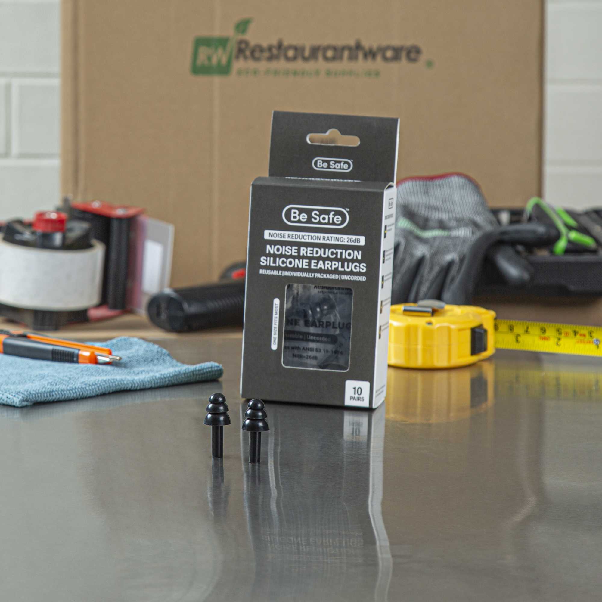 Enhance focus in bustling kitchens with noise-cancelling ear plugs. The Be Safe Black Silicone Uncorded Earplugs feature a humidity-resistant, reusable design, providing reliability in high-moisture environments. Made from pure silicone, these earplugs offer low pressure inside the ear for heightened comfort and are ideal as reusable earplugs, maintaining their shape over extended periods. ANSI-rated at 26dB, they significantly reduce kitchen noise distractions, while the CE-rated 32dB offers enhanced concentration during peak service times. Measuring 1.30 inches in length and 0.51 inches in width and height, these earplugs fit comfortably, boasting a Christmas tree design that adapts to most ear canals, making them perfect earplugs for sleeping. With 10 pairs per box, they ensure easy staff distribution, promoting efficient operations. Embrace a quieter work environment with these reliable earplugs. Each order includes 200 pairs.