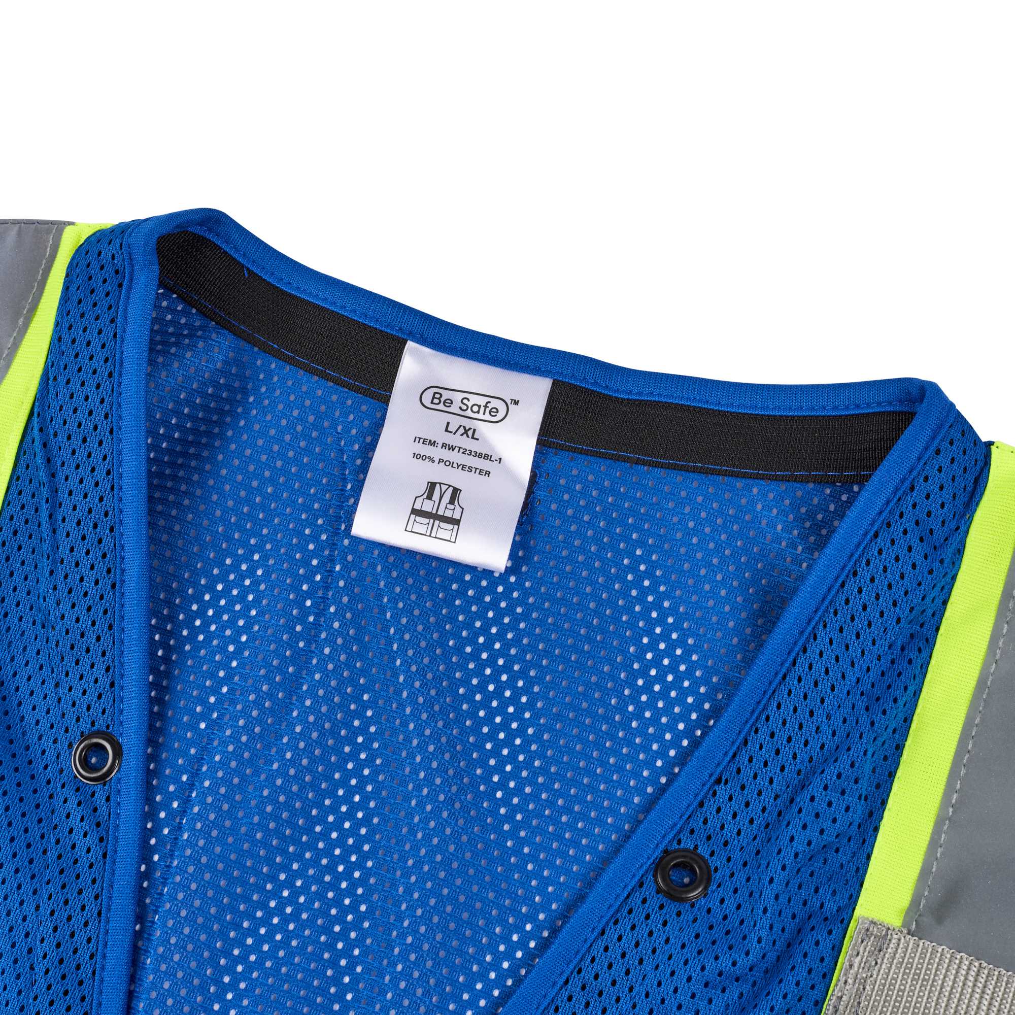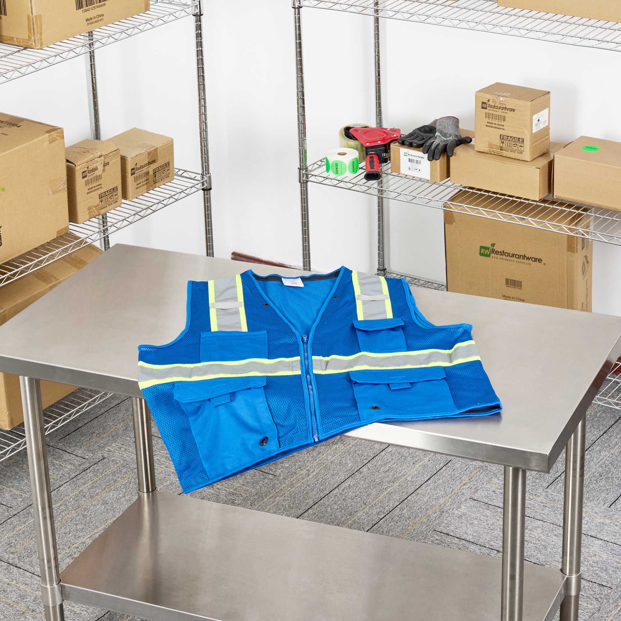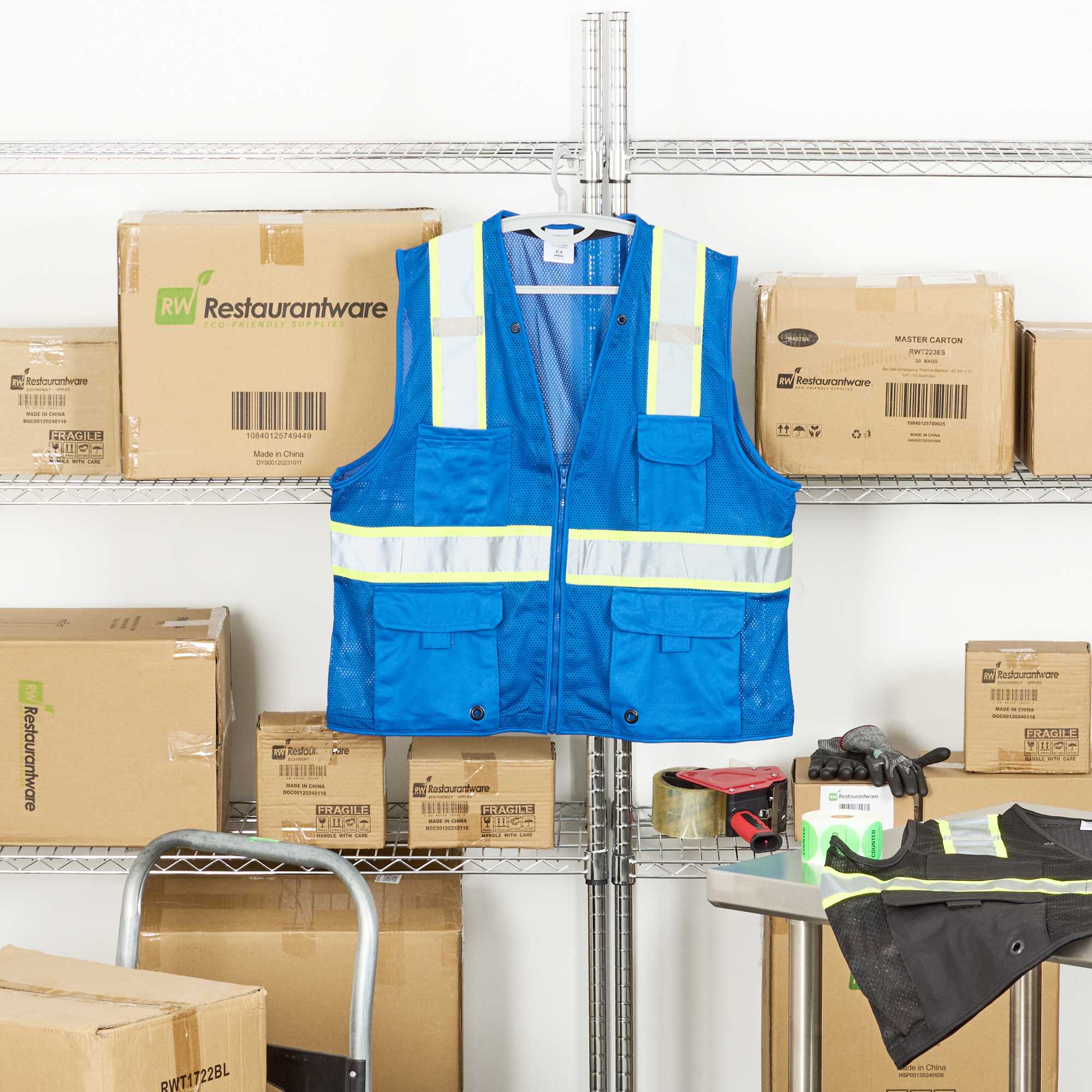 Enhance safety and efficiency in work environments with our Be Safe Reflective Stripes High Visibility Vest. This high visibility vest is crafted from durable plastic, making it ideal for busy kitchens where worker safety is paramount. With its high-visibility blue color, this reflective safety vest ensures team members are easily seen, reducing accidents and improving operational workflow. Equipped with multiple pockets, this multi-pocket safety vest provides ample storage for tools and notes, streamlining tasks and increasing productivity. Recommended for warehouses and event staff, this machine washable vest maintains its quality through numerous uses. Measuring 29.21 inches in length and 30.32 inches in width, this vest is perfect for late shifts or dim lighting conditions. Sold in a 1 count box.
