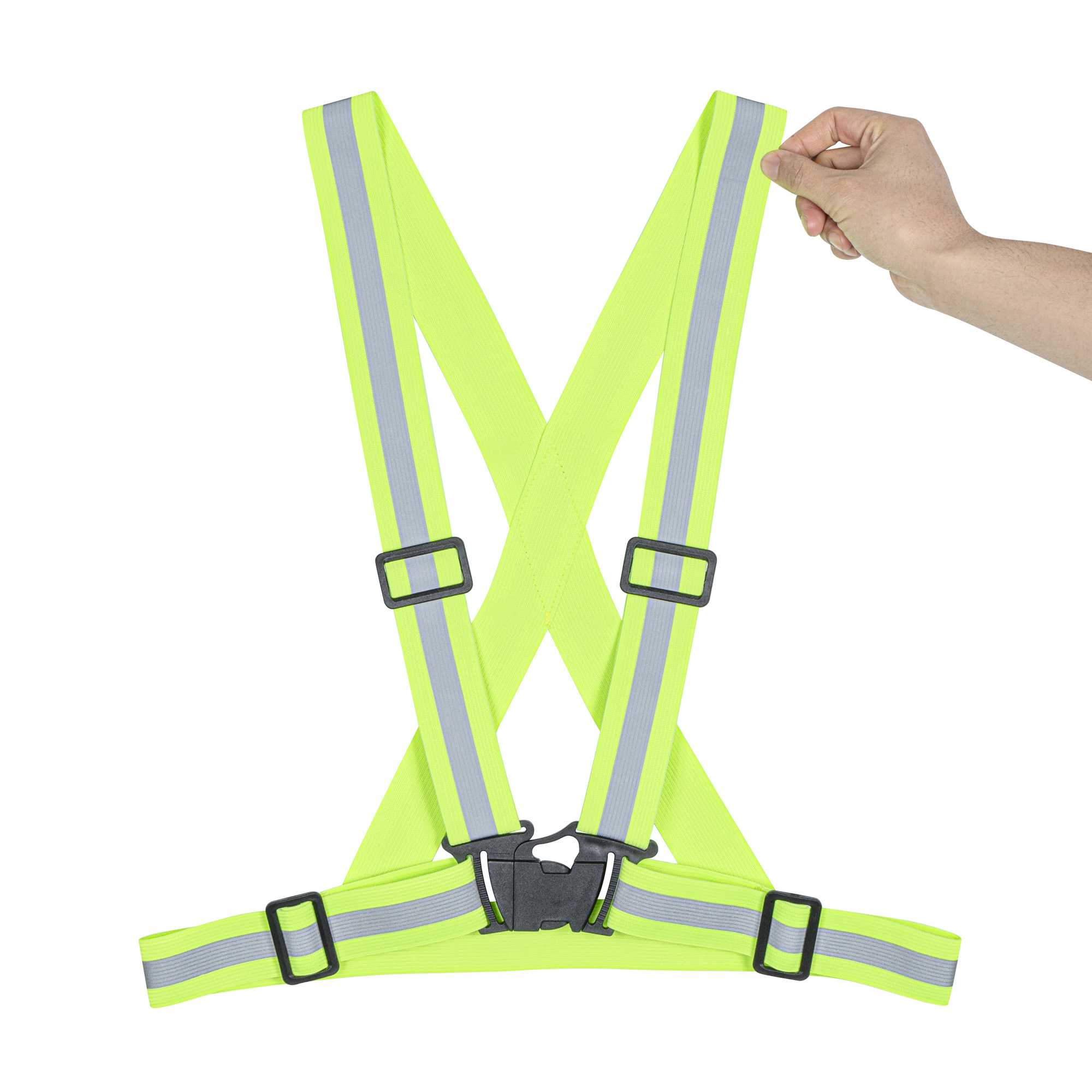 Stay visible and confident in low-light environments with our Be Safe Lime High Visibility Safety Suspenders. Featuring a bright lime color and 0.59-inch silver reflective tape, this suspender provides enhanced visibility for runners, roadside crews, and cyclists operating in dark or low-light settings. Made from lightweight polyester, it offers long-lasting comfort during extended wear. The fully adjustable straps ensure a one-size-fits-most fit, while the secure black plastic waist buckle keeps it firmly in place. Each suspender measures 20.08 inches in length by 20.87 inches in width. Sold in a 1 count box.