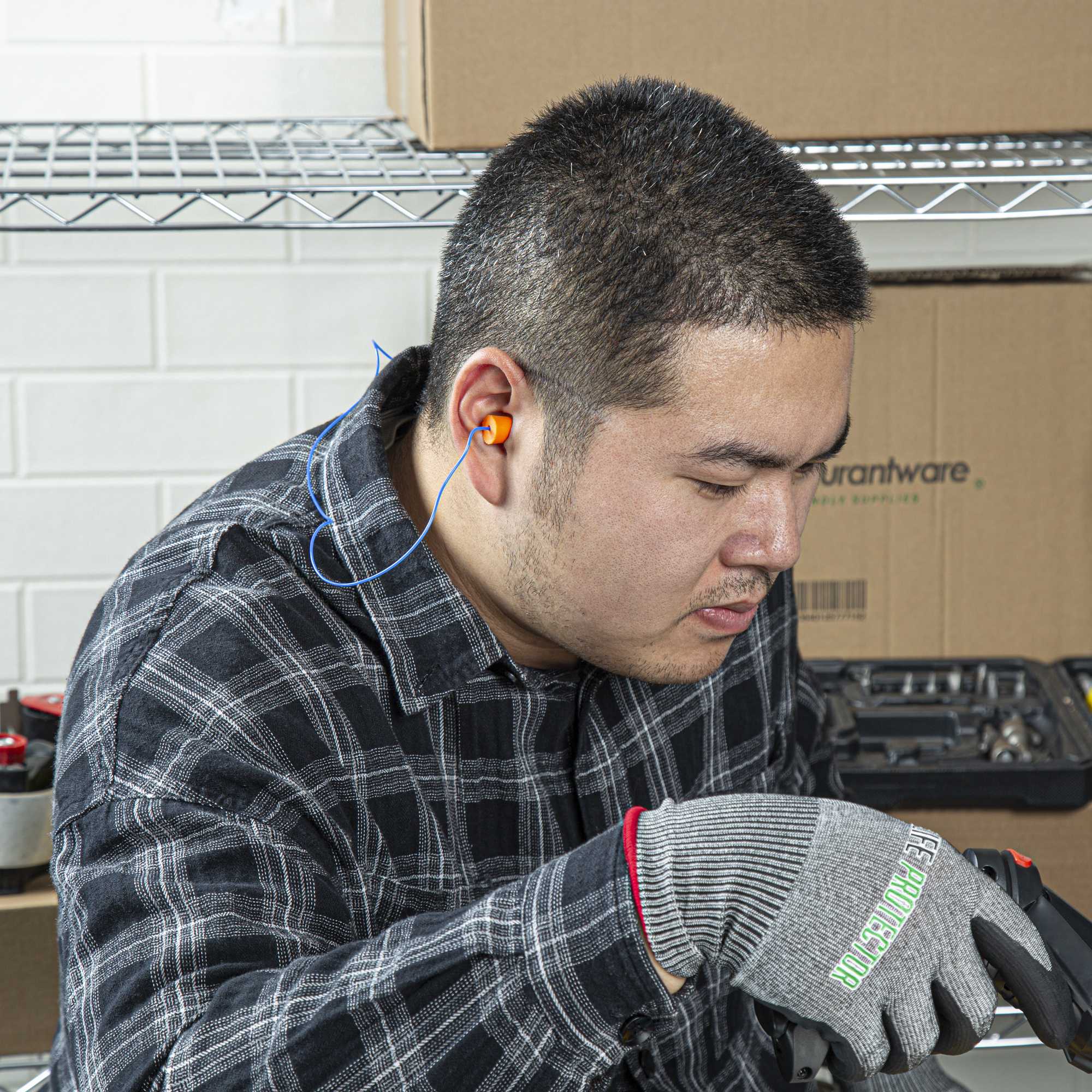 - PVC cord keeps earplugs secure during service shifts