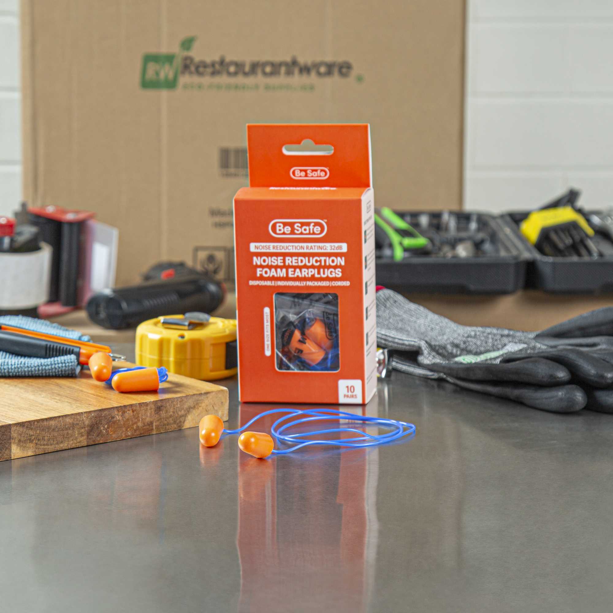 Ensure a quieter kitchen environment with dependable ear protection. Be Safe Orange and Blue Corded Foam Earplugs deliver enhanced focus for staff with their 32dB NRR, effectively minimizing distracting kitchen noise. Crafted from soft PU foam, these foam earplugs gently expand to fit most ear canals, providing premium comfort and protection during long shifts. The PVC cord ensures these reusable earplugs are securely fastened, preventing loss and allowing them to be easily accessible during busy service hours. Designed with a bullet shape, these noise-reducing earplugs are simple to insert and remove, aiding in quick transitions during hectic kitchen operations. With each 10-pair box, managing inventory becomes straightforward, making them ideal for large kitchens needing to equip multiple staff members efficiently. Equip your team with these essential foam earplugs to maintain focus and productivity. Each order includes 200 pairs.