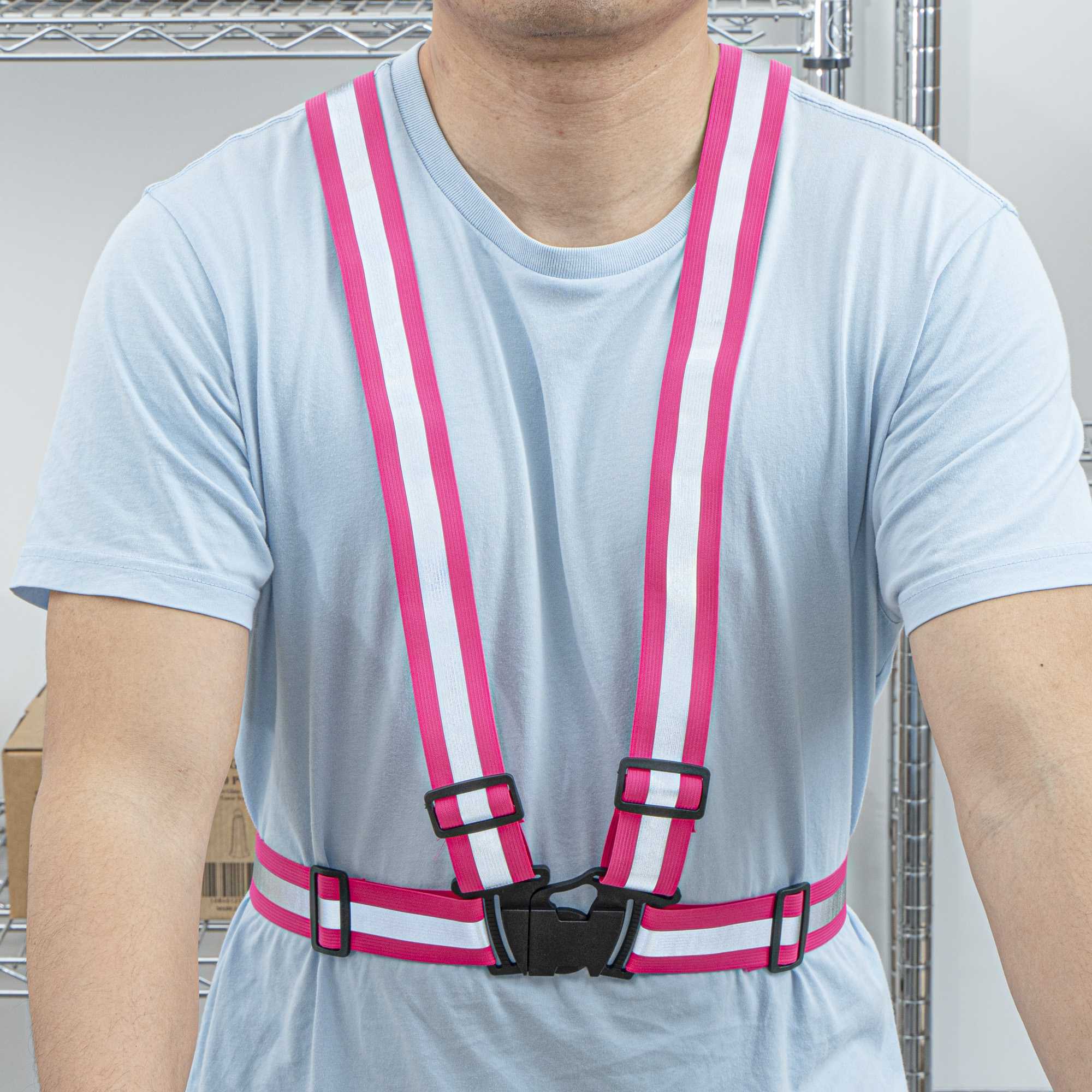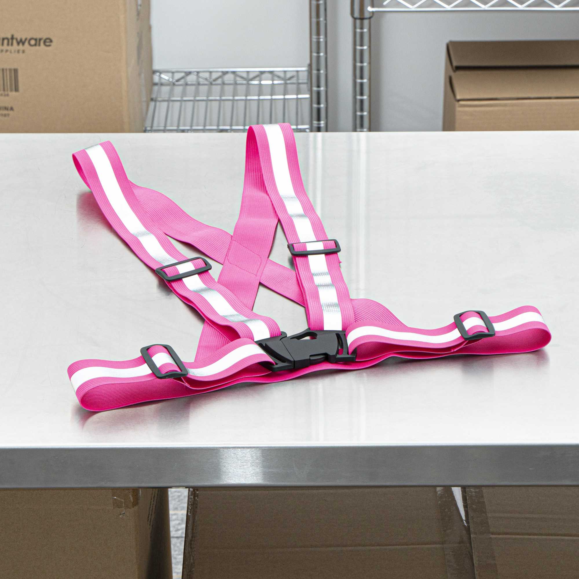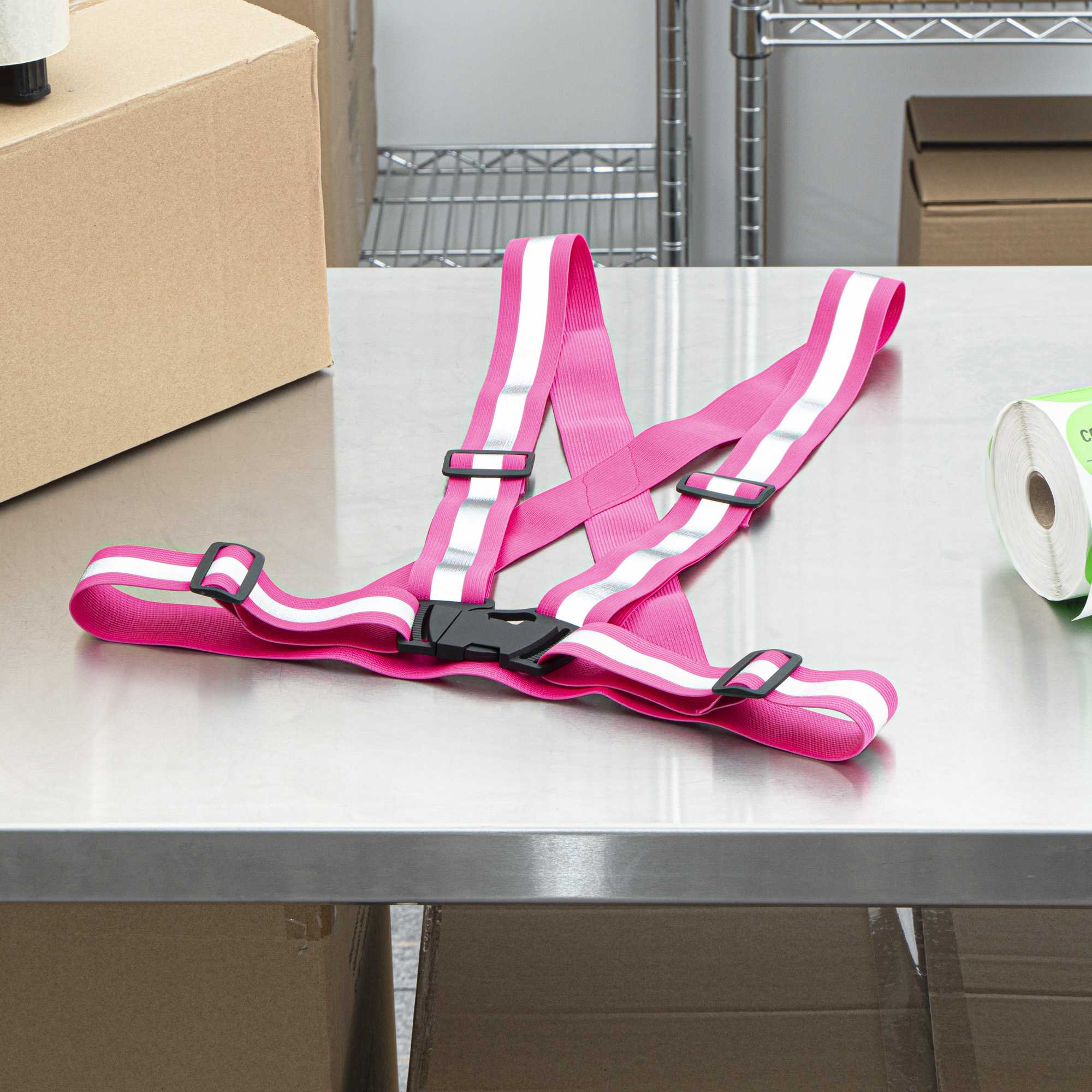 Promote safety and visibility with our Be Safe Pink High Visibility Safety Suspenders. Designed with vivid pink coloring and 0.59-inch reflective silver tape, these suspenders ensure that team members remain clearly seen during nighttime activities or roadside tasks. Crafted from lightweight polyester, they offer breathable comfort for all-day use. The fully adjustable straps and one-size-fits-most fit make them suitable for a wide range of users, while a sturdy black plastic buckle keeps them securely fastened. Each suspender measures 20.08 inches in length by 20.87 inches in width. Sold in a 20 count box.