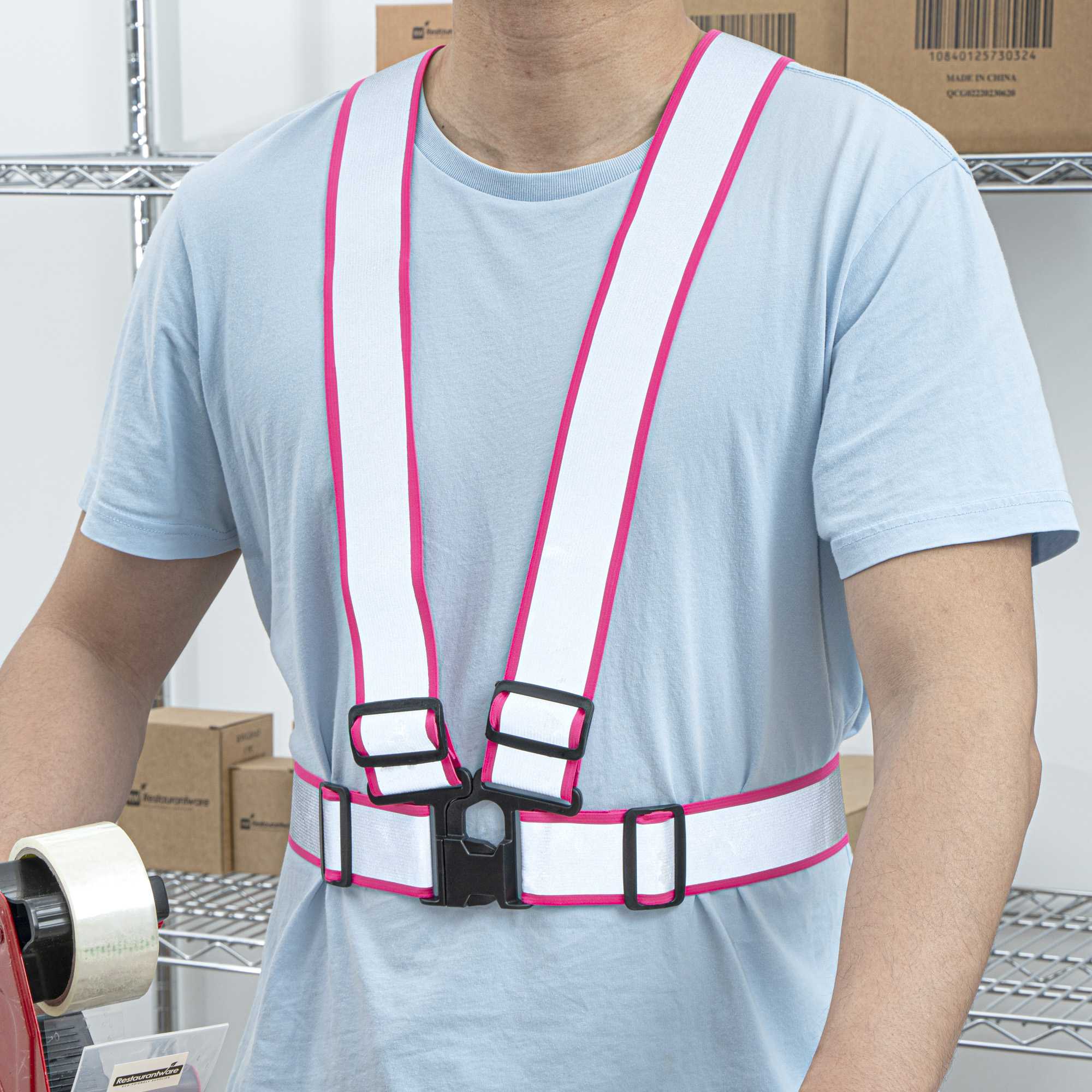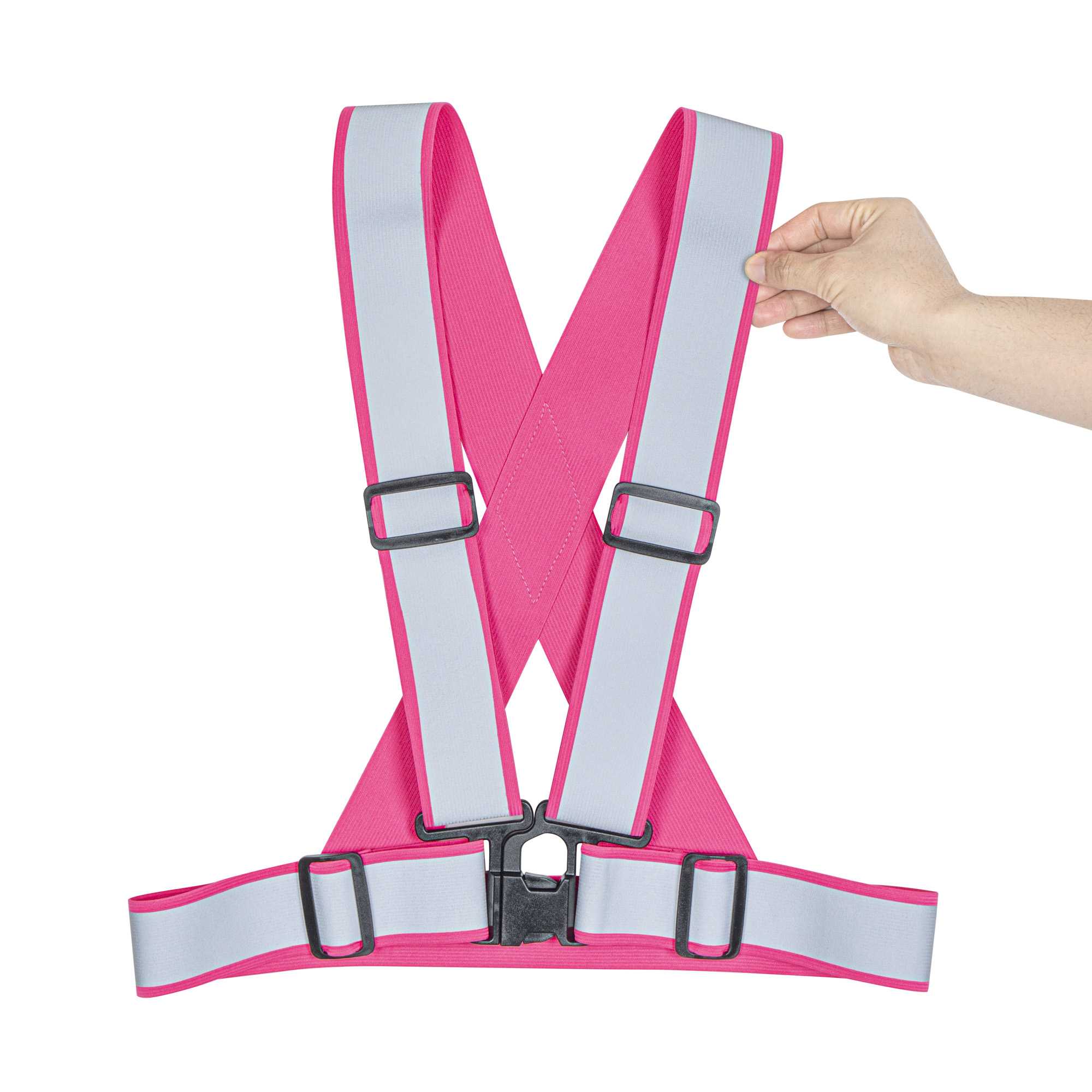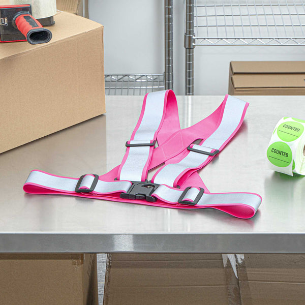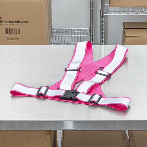 Prioritize visibility and style with our Be Safe Pink High Visibility Safety Suspenders. These eye-catching pink suspenders feature 1.57-inch wide reflective tape, boosting visibility in nighttime or low-visibility conditions, ideal for event staff, joggers, and traffic controllers. Crafted from durable, lightweight polyester, they’re designed for comfort without compromising safety. The adjustable straps and one-size-fits-most construction provide a secure, personalized fit, while the black plastic buckle keeps everything reliably fastened. Each suspender measures 20.08 inches in length by 20.87 inches in width. Sold in a 20 count box.