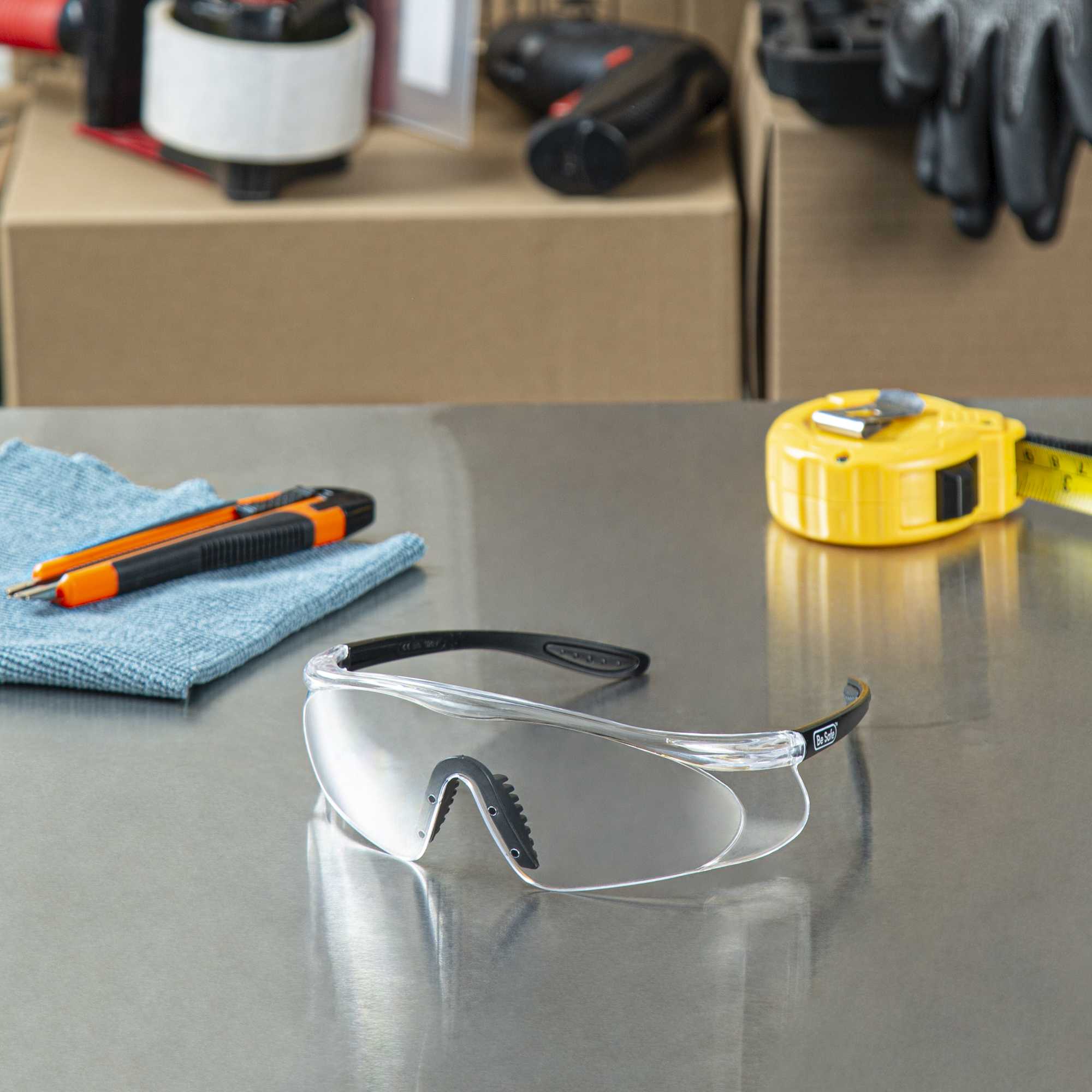 Protect your eyes in bustling kitchens with clarity that lasts. The Be Safe Safety Glasses ensure long-term clear visibility, making them indispensable safety goggles for busy foodservice environments. Their impact protection lens safeguards eyes during hectic shifts, while the anti-fog coating maintains clarity even in steamy conditions, ensuring reliability as ansi z87.1 safety glasses. Crafted from recyclable plastic, these uv protection glasses offer durability and sustainability, providing a dependable choice for chefs and staff. Enhance safety protocols with these essential eye protectors, designed to withstand the demands of the foodservice industry. With a size of 6.06 x 6.30 x 2.05 inches, these goggles are lightweight yet sturdy. Each order includes 10 glasses.