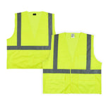 Optimize worker visibility with our Be Safe Type R Class 2 Lime 2XL/3XL High Visibility Mesh Safety Vest. Featuring a bright lime hue and reflective tape, this safety vest improves visibility in dim or hazardous jobsite conditions. Made from breathable polyester mesh, this vest keeps wearers cool and comfortable during long work shifts. Outfitted with a hook-and-loop closure, this vest allows for quick, secure wear and removal to minimize downtime. Multiple front pockets make tool and notepad access easy, supporting on-the-go productivity. Machine washable and recyclable, this hi-vis vest offers both durability and eco-consciousness. Measuring 29.2 inches in length by 30.3 inches in width, this safety vest provides a relaxed fit for larger body types without sacrificing mobility. Sold in a 1 count box.