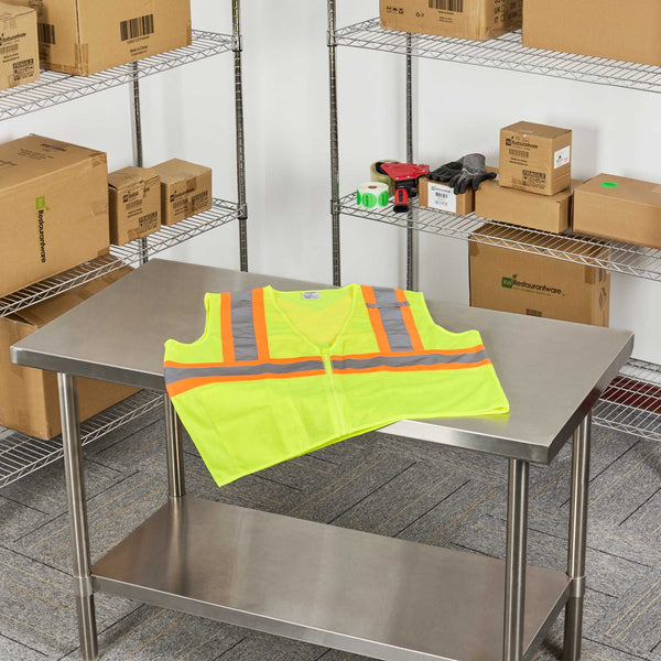 Reinforce workplace safety with our Be Safe Type R Class 2 Lime 2XL/3XL High Visibility Mesh Safety Vest. Made from breathable polyester mesh, this reflective vest keeps staff cool during extended shifts. Its bold lime color and X-back reflective tape enhance visibility in low-light or hazardous environments. This high-visibility vest is equipped with a front zipper closure for a secure, distraction-free fit. A convenient inner pocket stores essentials such as pens or notepads, promoting task efficiency. Built from machine-washable plastic, this hi vis vest is durable and recyclable to support sustainable workplace practices. Measuring 29.21 inches in length by 30.3 inches in width, this mesh safety vest is designed for larger body types without compromising mobility. Sold in a 1 count box.